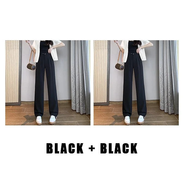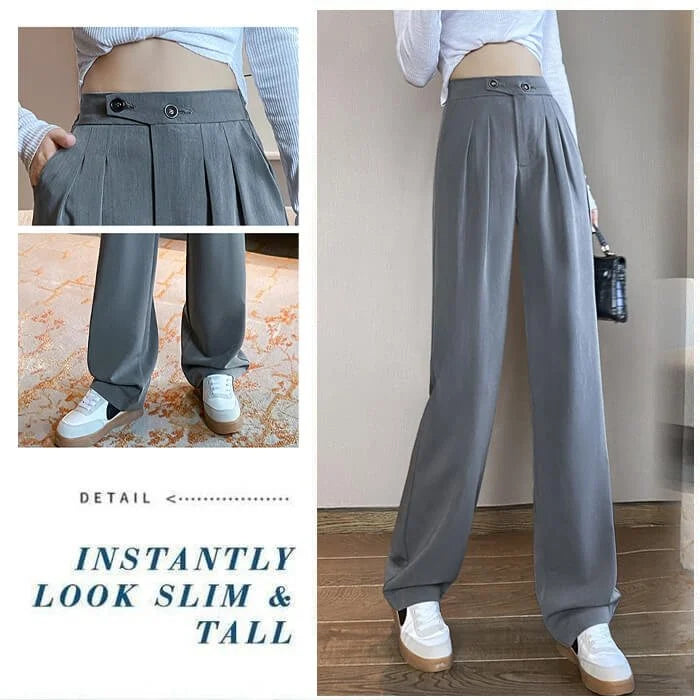 - Plisowany krój dobrze ukrywa tłuszcz na nodze, dzięki czemu noga jest smukła i smukła. Szerokie proste nogawki, luźny krój Odpowiedni dla wszystkich kobiet.