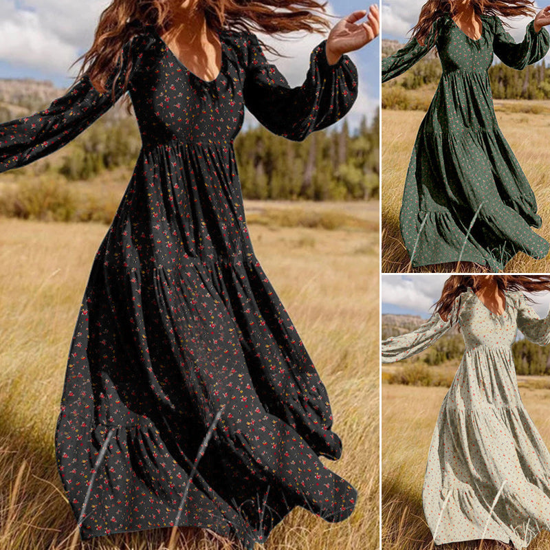 2023 Temperament casual odzież damska, szyfonowa duża rozkloszowana sukienka z dekoltem w szpic