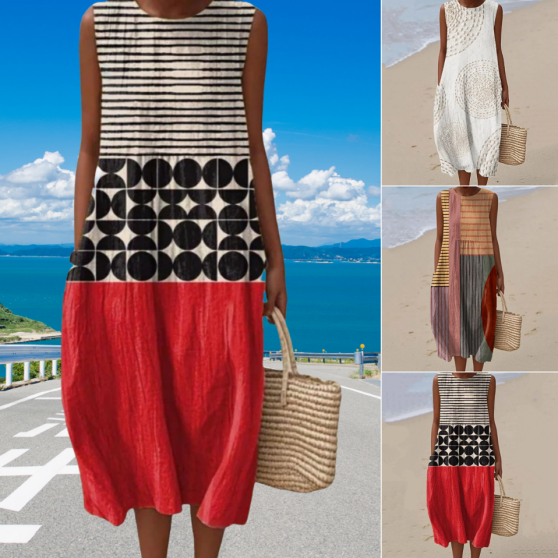 Pakiet zawiera: 1 * Modna damska sukienka bez rękawów z okrągłym dekoltem