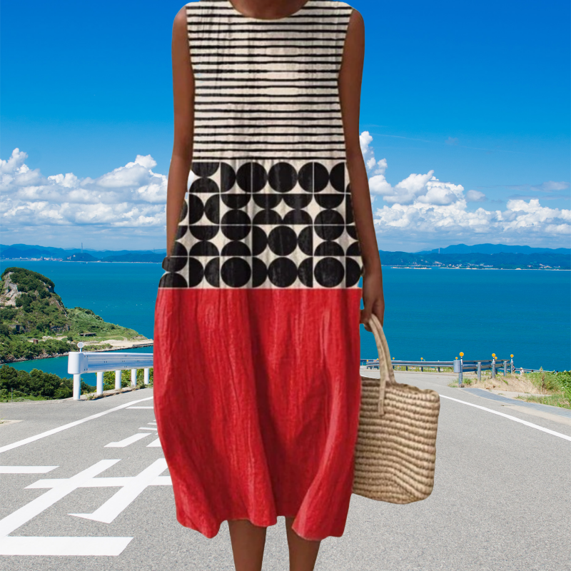 Modna damska sukienka bez rękawów z okrągłym dekoltem