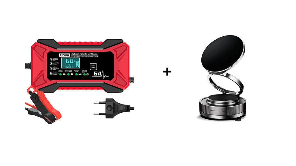 PODWÓJNA KOMPATYBILNOŚĆ I REGENERACJA AKUMULATORÓW: Ładuje zarówno akumulatory samochodowe, jak i rowerów elektrycznych dzięki zaawansowanej technologii pulsacyjnej regeneracji. Przywraca życie akumulatorom z łagodnym zasiarczeniem, przedłużając ich żywotność i oszczędzając koszty wymiany.