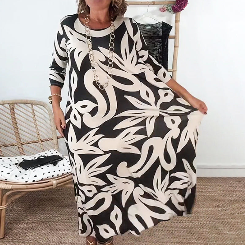 🌼Elegancka, luźna, z okrągłym dekoltem, wzorzysta sukienka damska