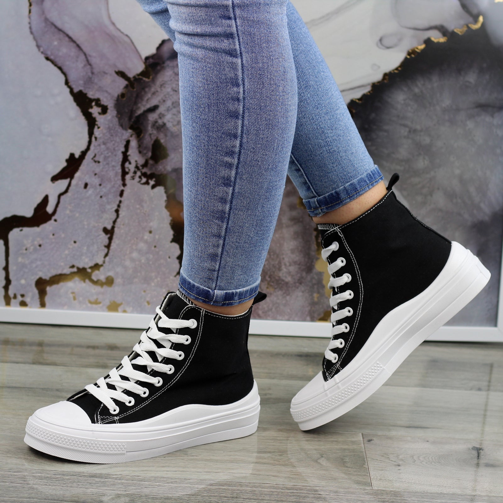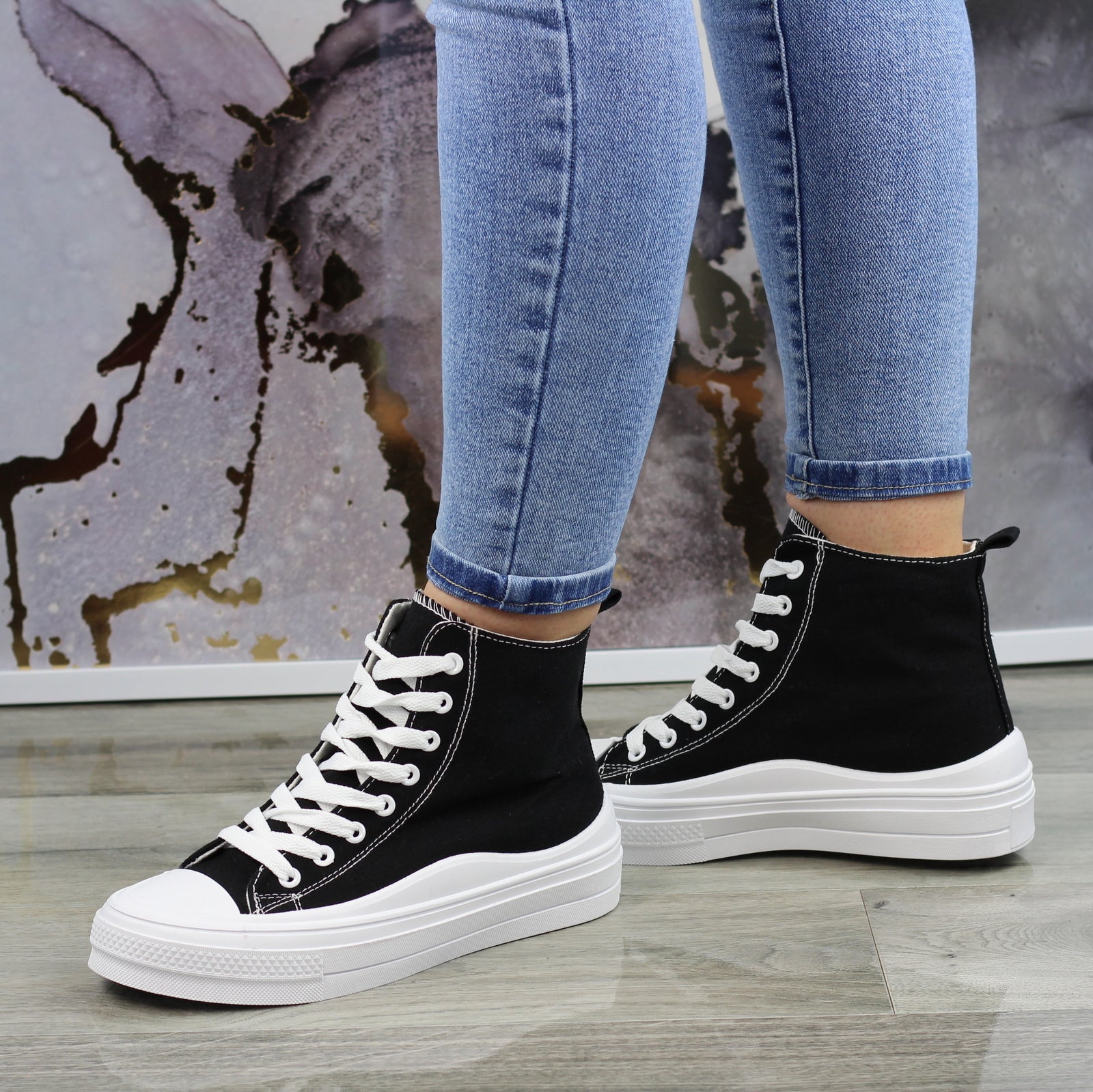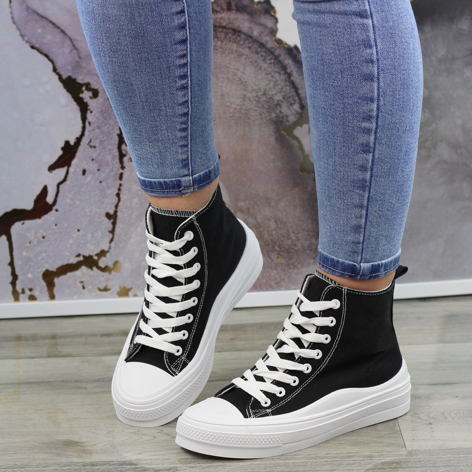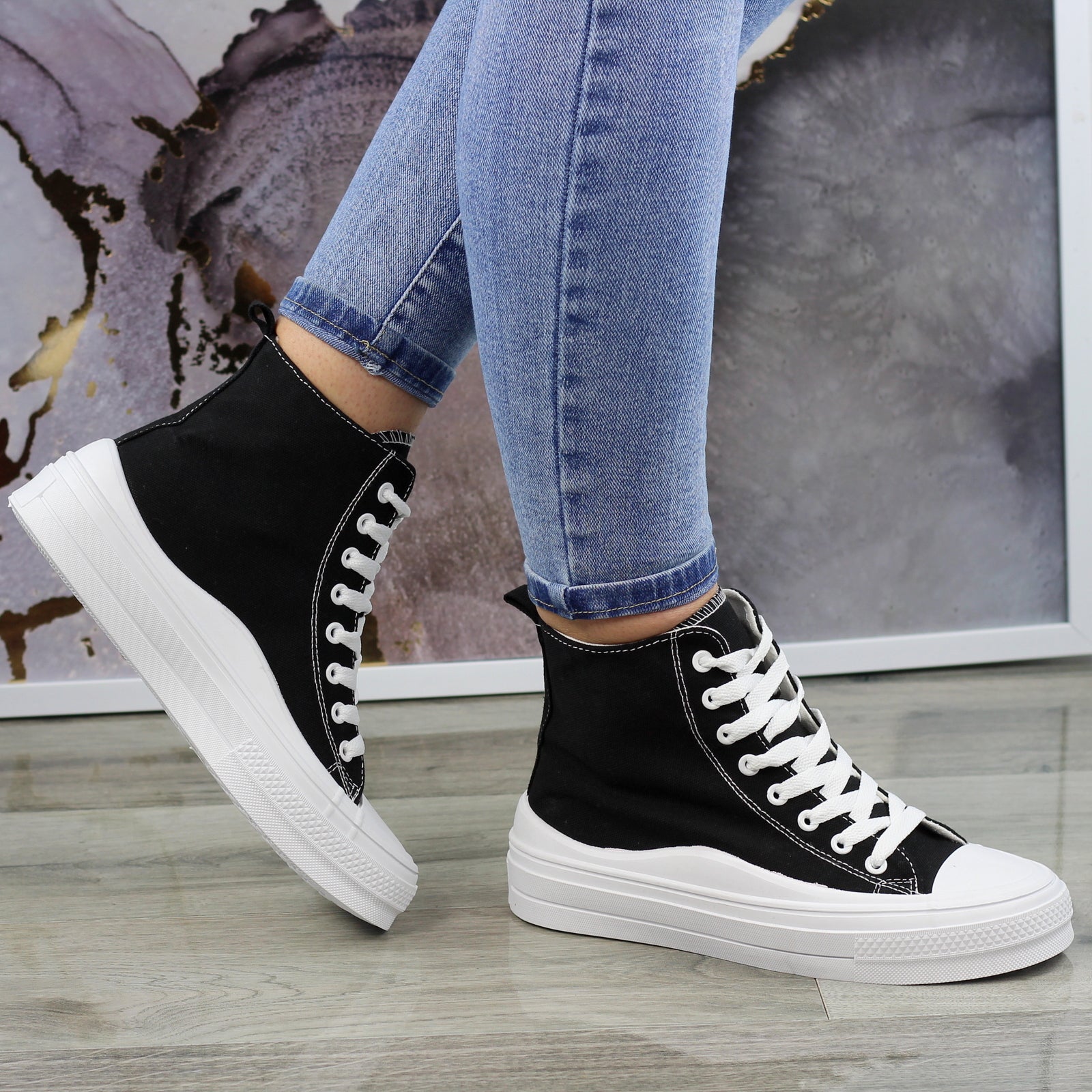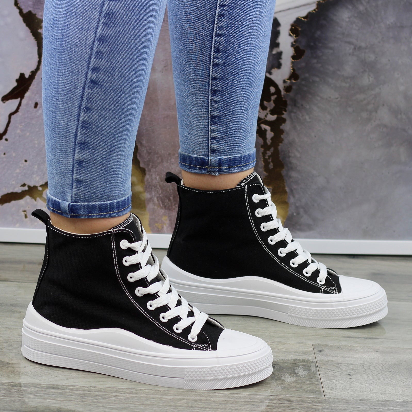 CZARNE DŁUGIE TRAMPKI DAMSKIE NA GRUBEJ PODESZWIE