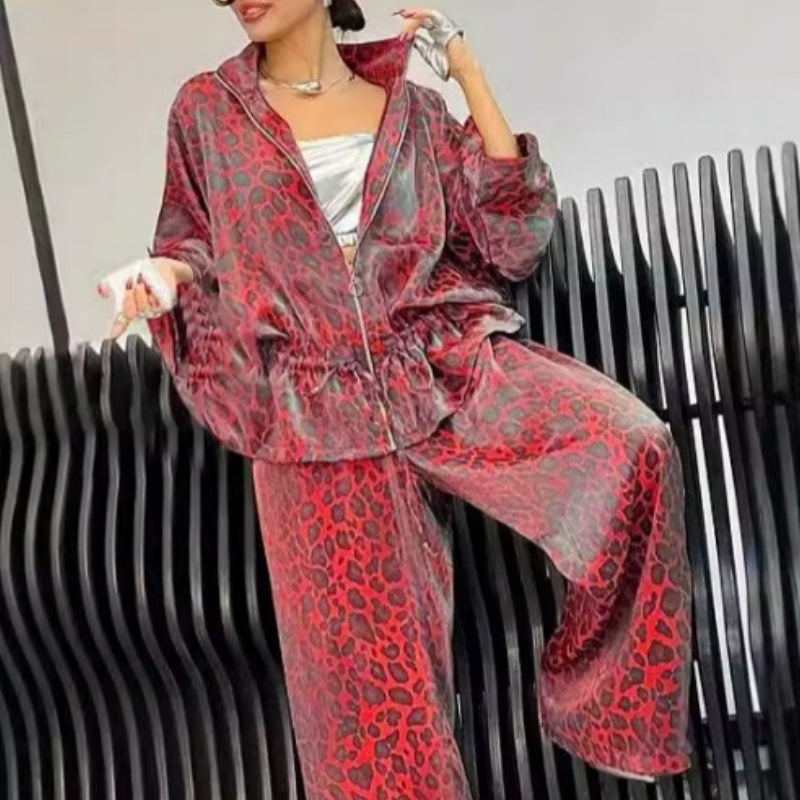 🔥Dwuczęściowy komplet damski z klapami w panterkę
