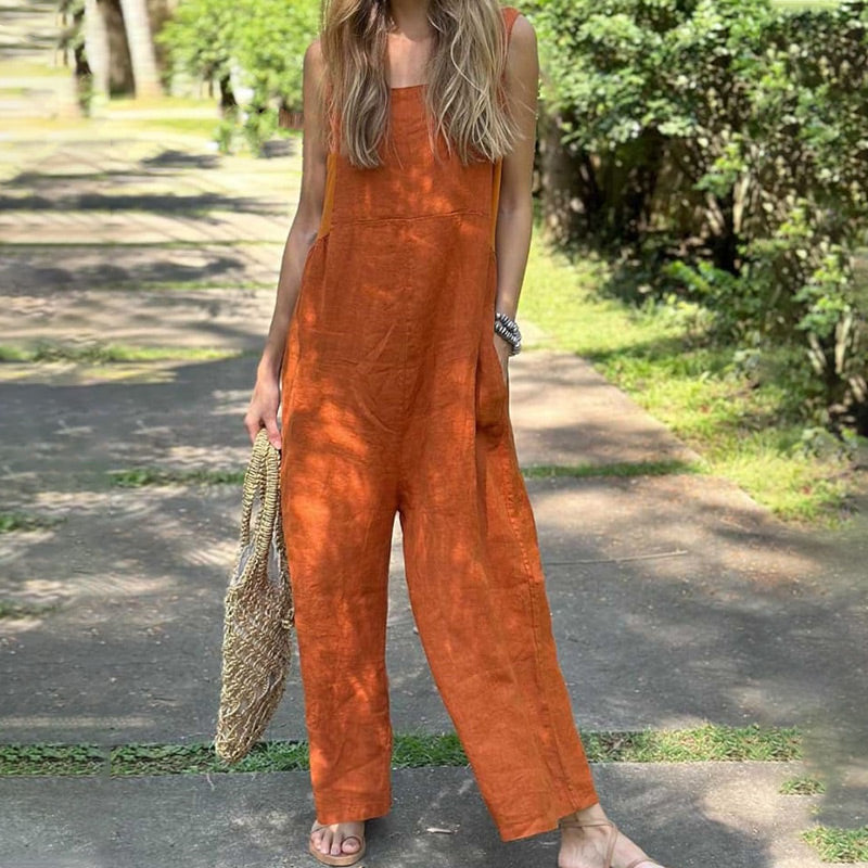 Casualowy oddychający kombinezon bez rękawów z kwadratowym dekoltem-TAB