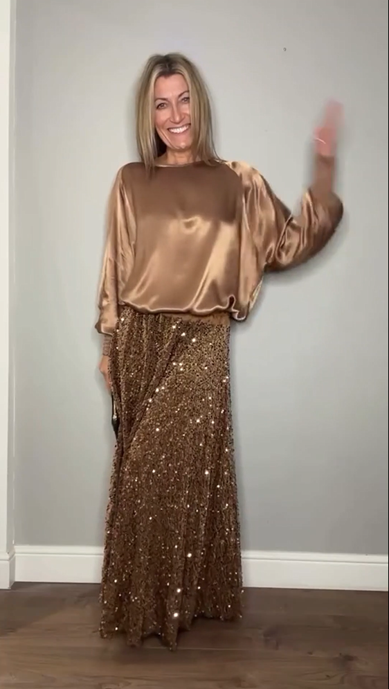 WYSOKIEJ JAKOŚCI MATERIAŁY: Miękki, oddychający top zapewnia wygodę przez cały dzień, a cekinowa spódnica maxi jest wykonana z trwałych cekinów, które pozostają nienaruszone po wielu noszeniach, zachowując swój połysk.