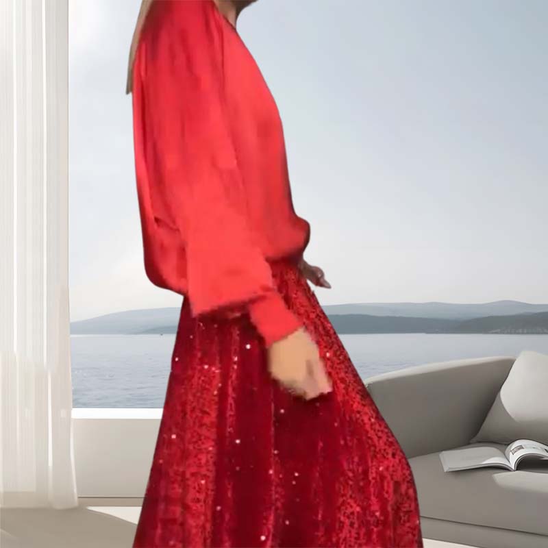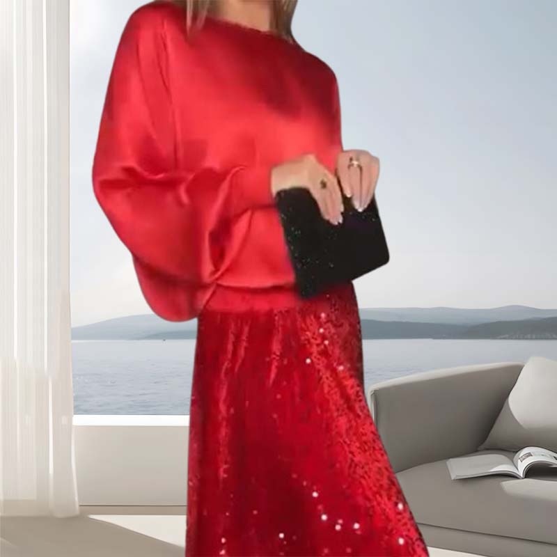 Dwuczęściowy damski top z długim rękawem i spódnica z cekinami