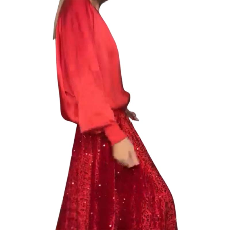 PRZYCIĄGAJĄCE WZROK CEKINY: Cekiny na spódnicy łapią światło, dodając odrobinę blasku i blasku. Starannie dobrane pod kątem bogatej kolorystyki i luksusowego wykończenia sprawiają, że wyróżnisz się w tłumie.