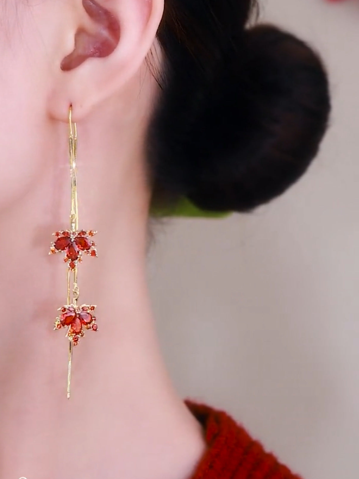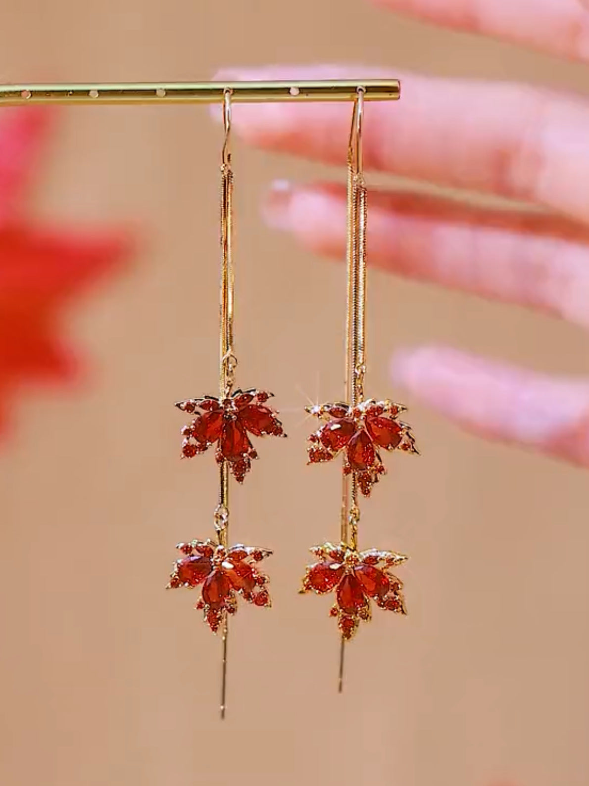 Pakiet: Kolczyki z frędzlami z podwójnym liściem klonowym*1 pair