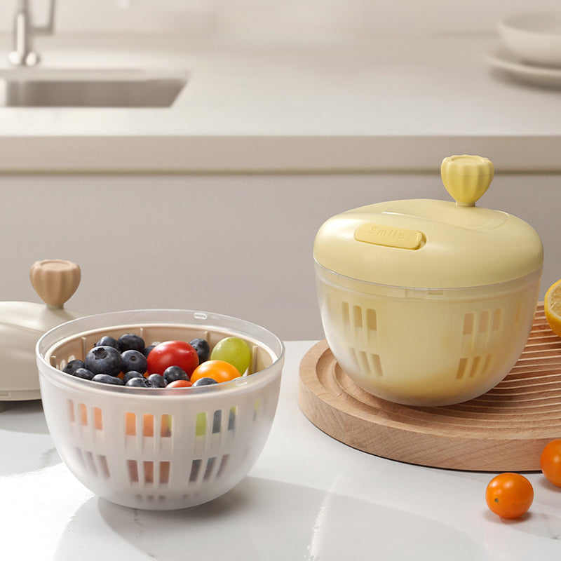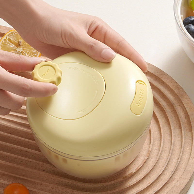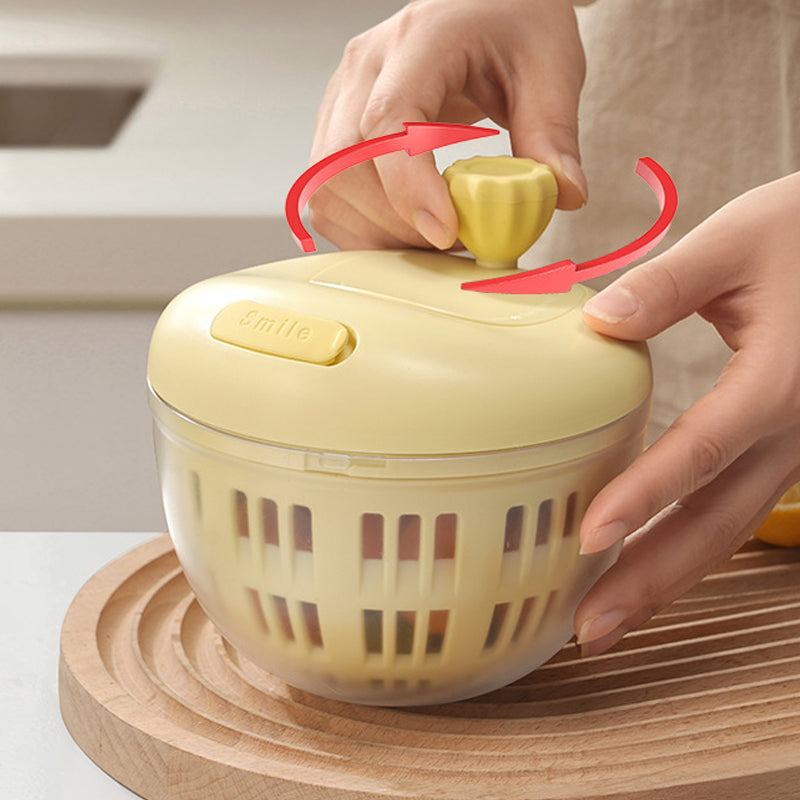 Ręczna korba zapewnia płynny, bezwysiłkowy obrót o 360°. Szybki ruch odśrodkowy usuwa wodę szybko i dokładnie, pomagając owocom i warzywom zachować świeżość i suchość na dłużej.