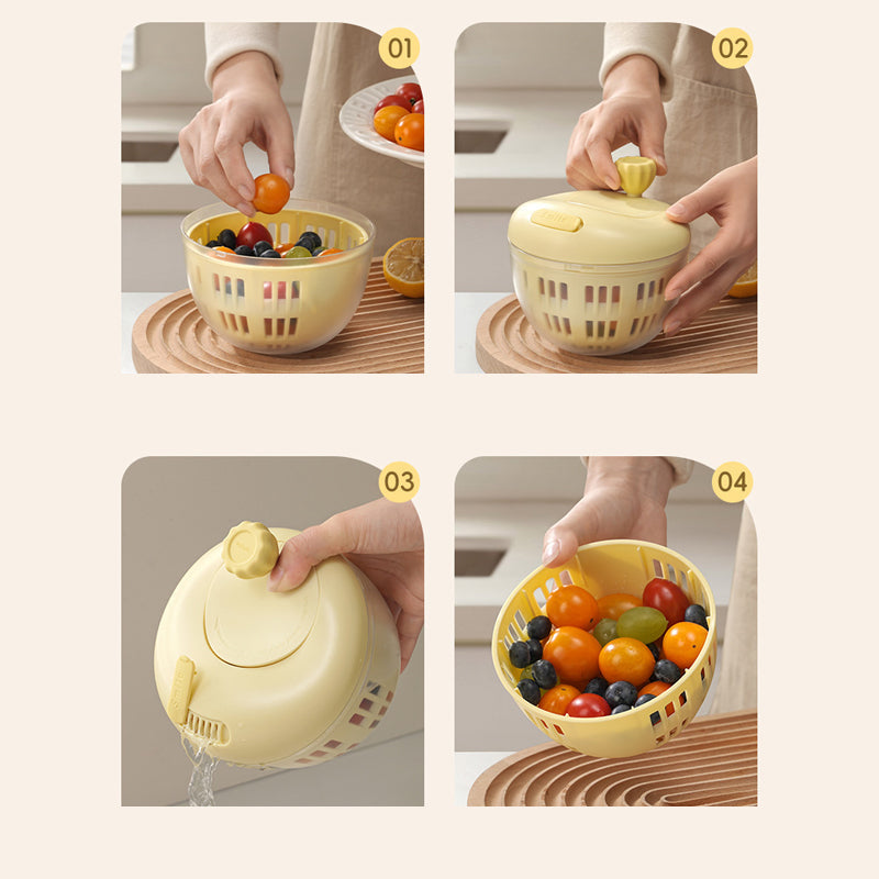 Łączy w sobie funkcje mycia, odsączania i przechowywania. Idealna do czyszczenia owoców i warzyw, odwirowywania nadmiaru wody oraz wygodnego przechowywania składników—wszystko w jednym, kompaktowym urządzeniu.