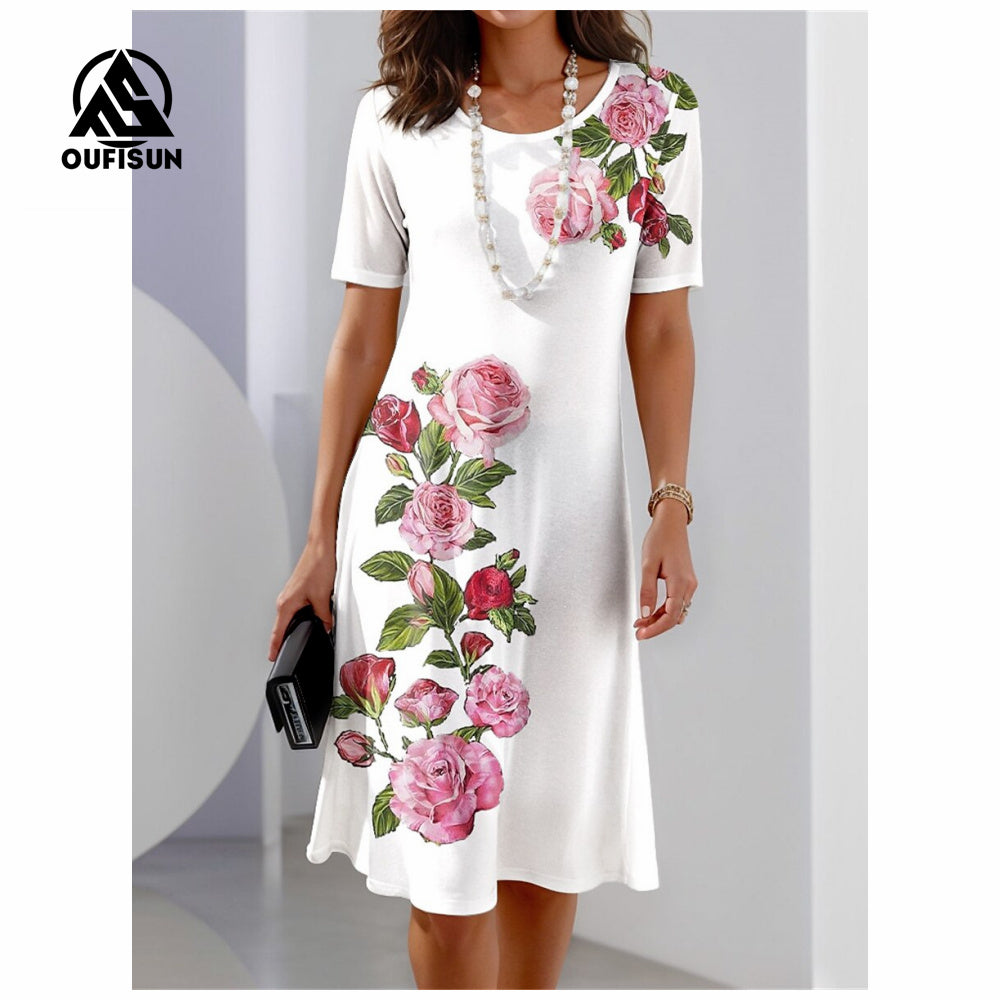 Moda kwiatowy nadruk krótkie rękawowe sukienki Maxi Motyl Kwiatowy długi sukienka