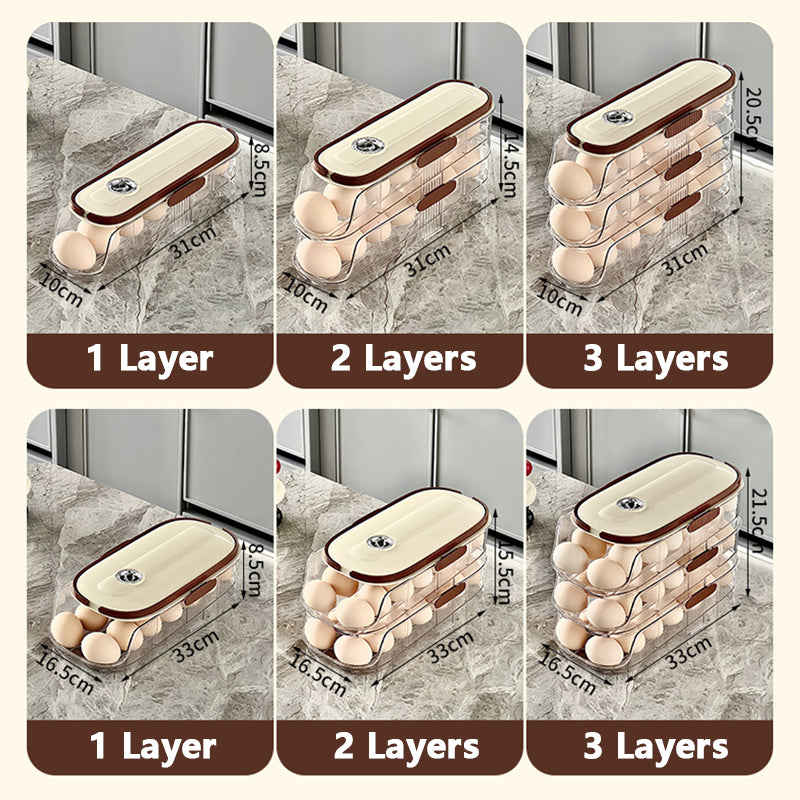UWAGA AKTUALIZACJA: Możesz łatwo zaznaczyć, kiedy jaja trafiły do organizera, za pomocą przycisku rejestrowania czasu przechowywania. Przezroczysta plastikowa konstrukcja zapewnia doskonałą widoczność, dzięki czemu na pierwszy rzut oka widać, ile jajek zostało, co ogranicza marnowanie żywności i niepotrzebne wyjścia do sklepu.