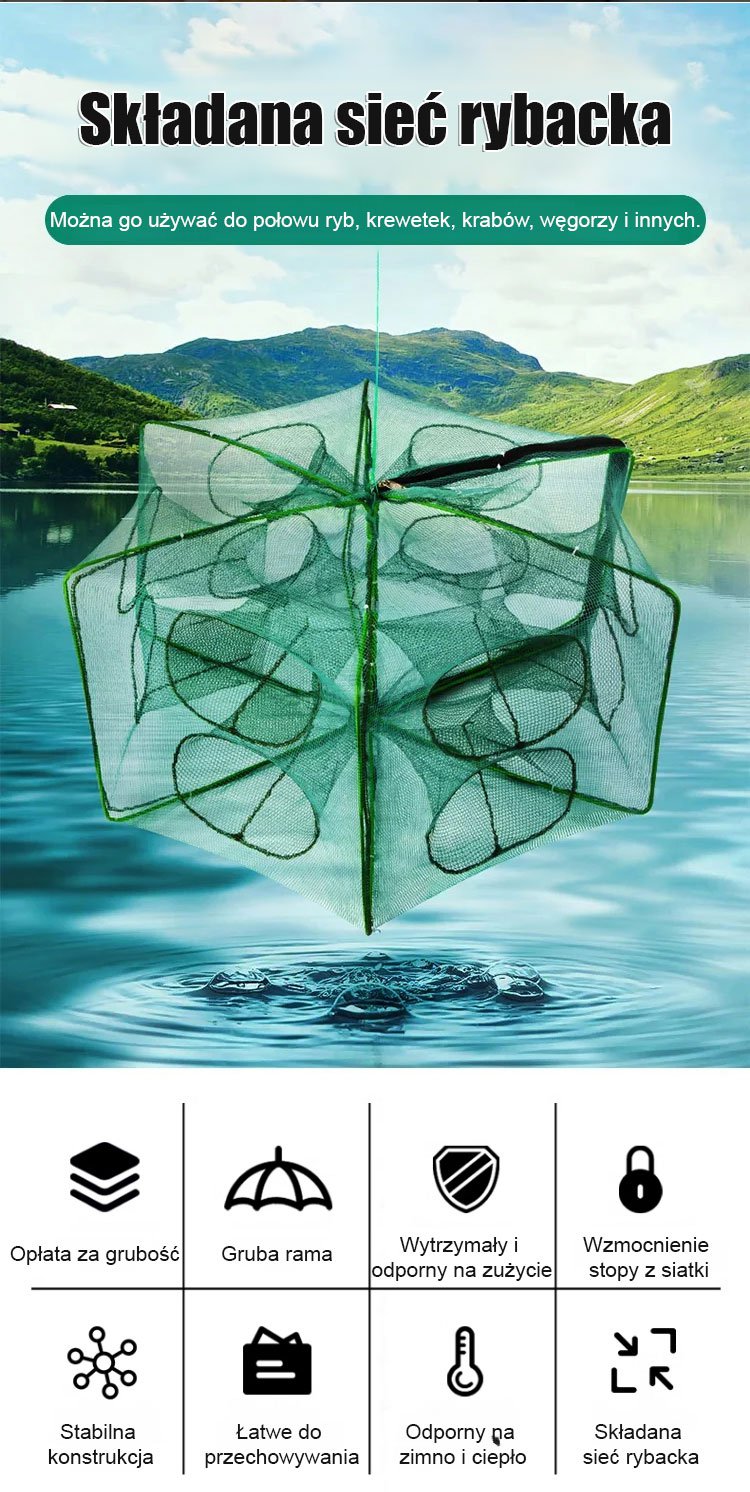 [Mistrz wędkarstwa] Automatycznie składa i pogrubia klatkę wędkarską