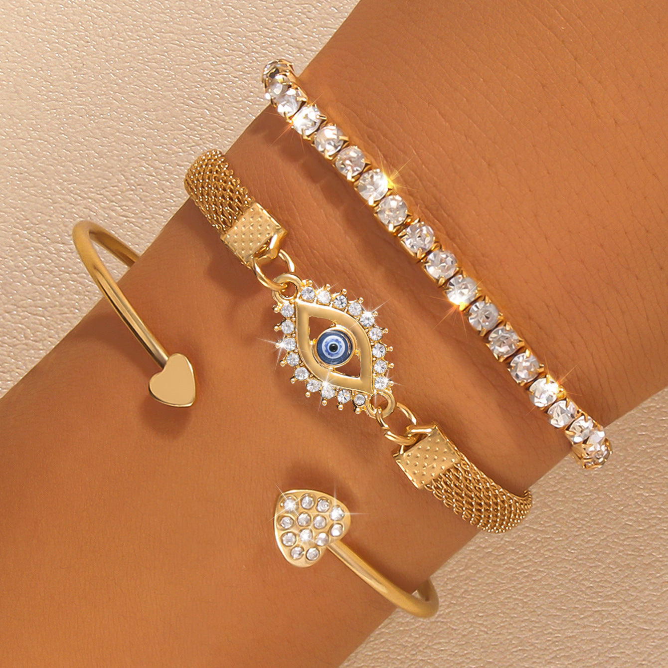 Ten trzyczęściowy zestaw złotych bransoletek w stylu boho idealnie łączy elegancję, glamour i styl, zapewniając niezapomniany wygląd na każdą okazję. Bransoletki dodadzą odrobinę luksusu każdej stylizacji. Niezależnie od tego, czy wybierasz się na wieczorne wyjście, czy chcesz podkreślić swój swobodny look, te bransoletki sprawią, że będziesz w centrum uwagi.