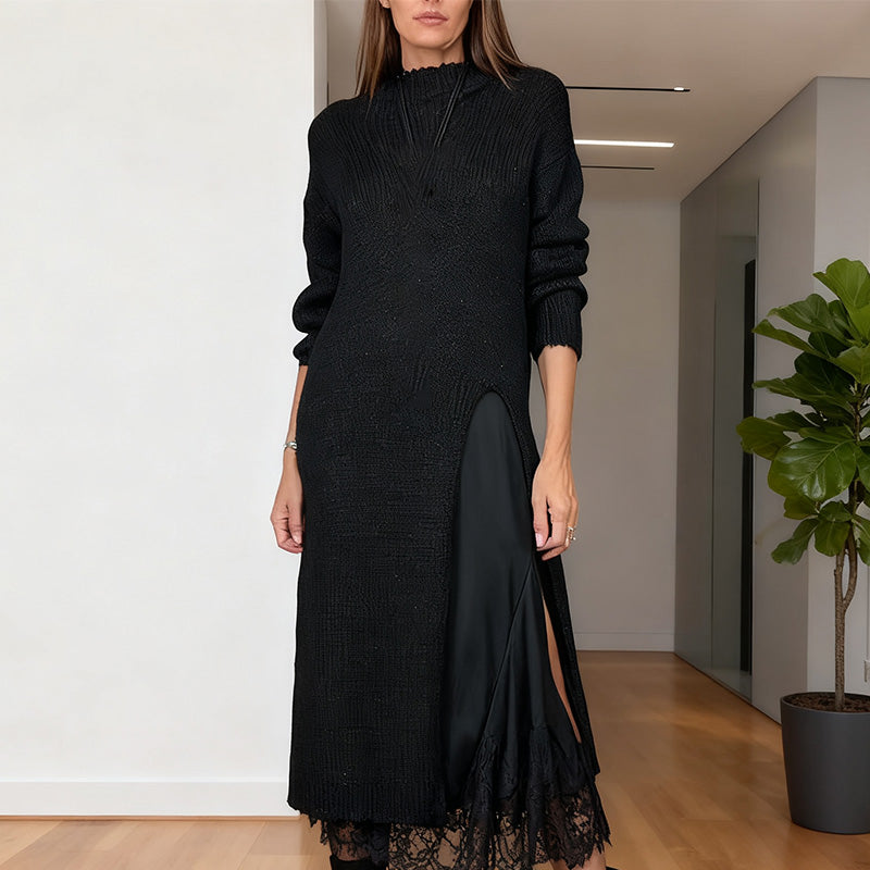 ELEGANCKI, WARSTWOWY STYL: Postaw na szykowną, wyrafinowaną estetykę dzięki temu starannie zaprojektowanemu dwuczęściowemu zestawowi. Długi, miękki sweter bezszwowo układa się na sukience na ramiączkach, tworząc łatwą w stylizacji stylizację. Ta kombinacja oferuje zarówno ciepło, jak i wyrazisty, modny styl, idealny na okres przejściowy.