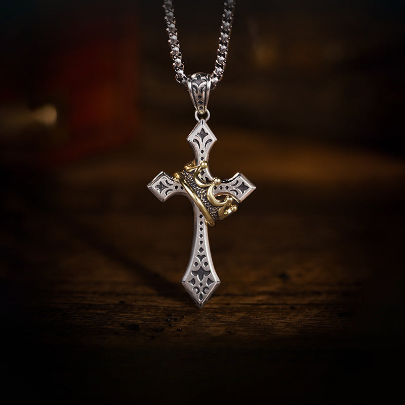 Noś symbol boskiego autorytetu i nieustraszonej wiary . Wisiorek Kingdom Cross & Crown to śmiałe połączenie duchowej siły . Wykonany z najwyższej jakości stali nierdzewnej, srebrny krzyż zdobią ozdobne wycięcia i zwieńczony jest królewską koroną w kolorze złota. To coś więcej niż naszyjnik – to wyrazisty akcent.