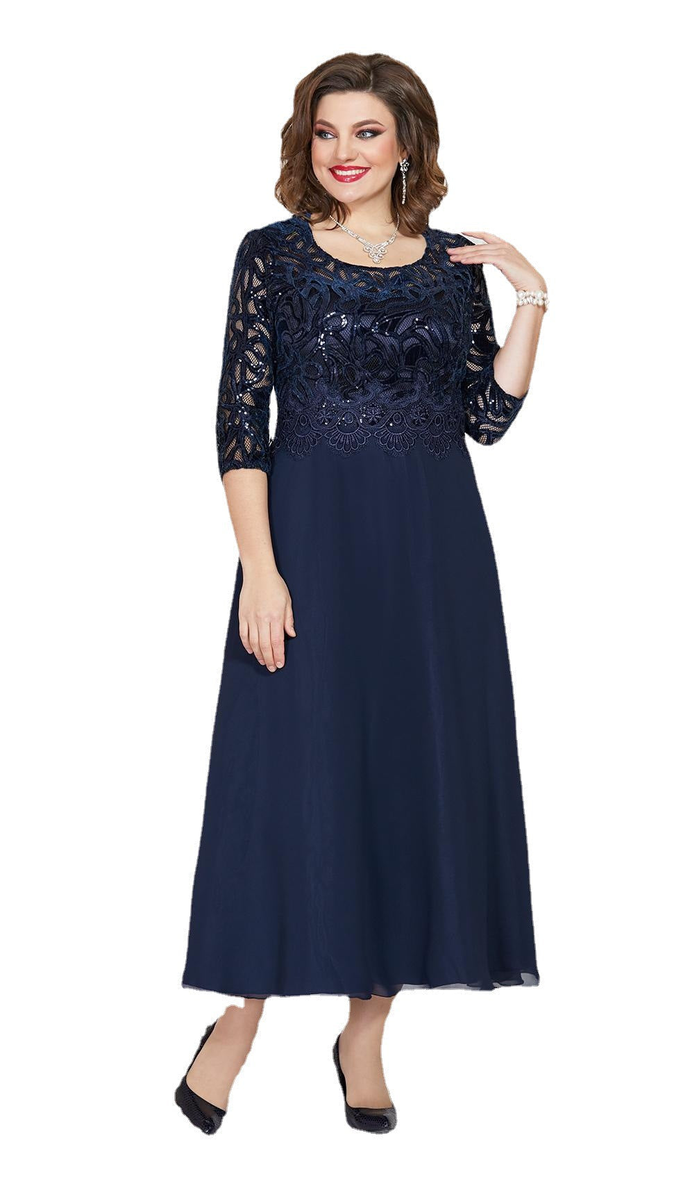【Tkanina】 ---- Haftowana kwiecista koronka dodaje tej sukience odrobinę słodyczy. Ta damska sukienka midi ma dopasowany krój i elegancką sylwetkę.