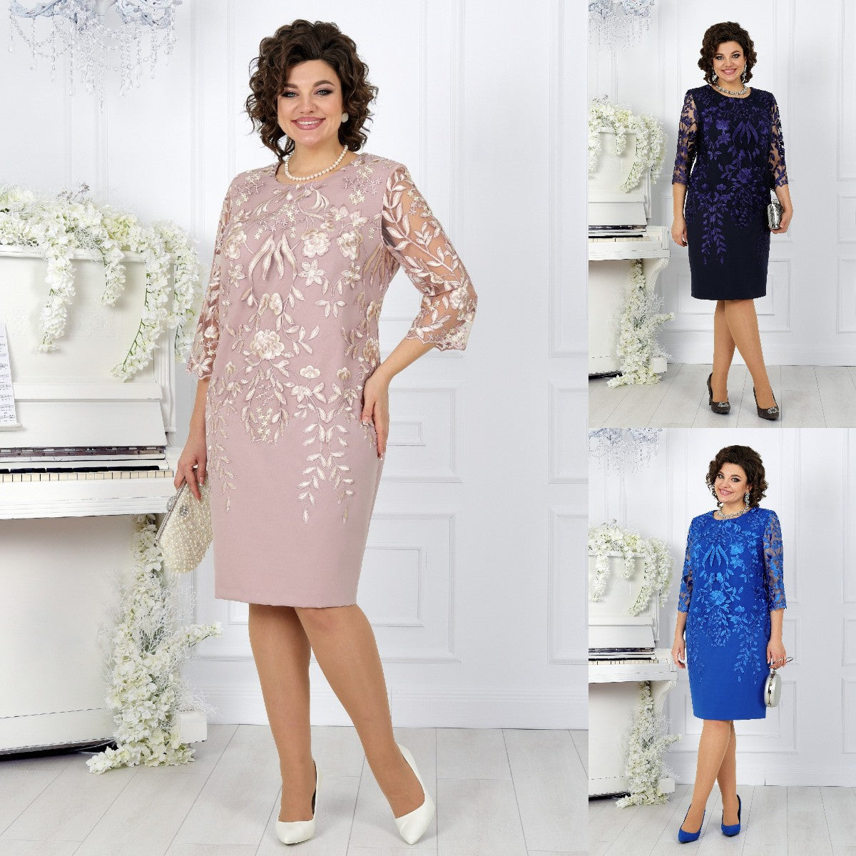 Sukienka oversize z koronkowymi patchworkami i nadrukiem