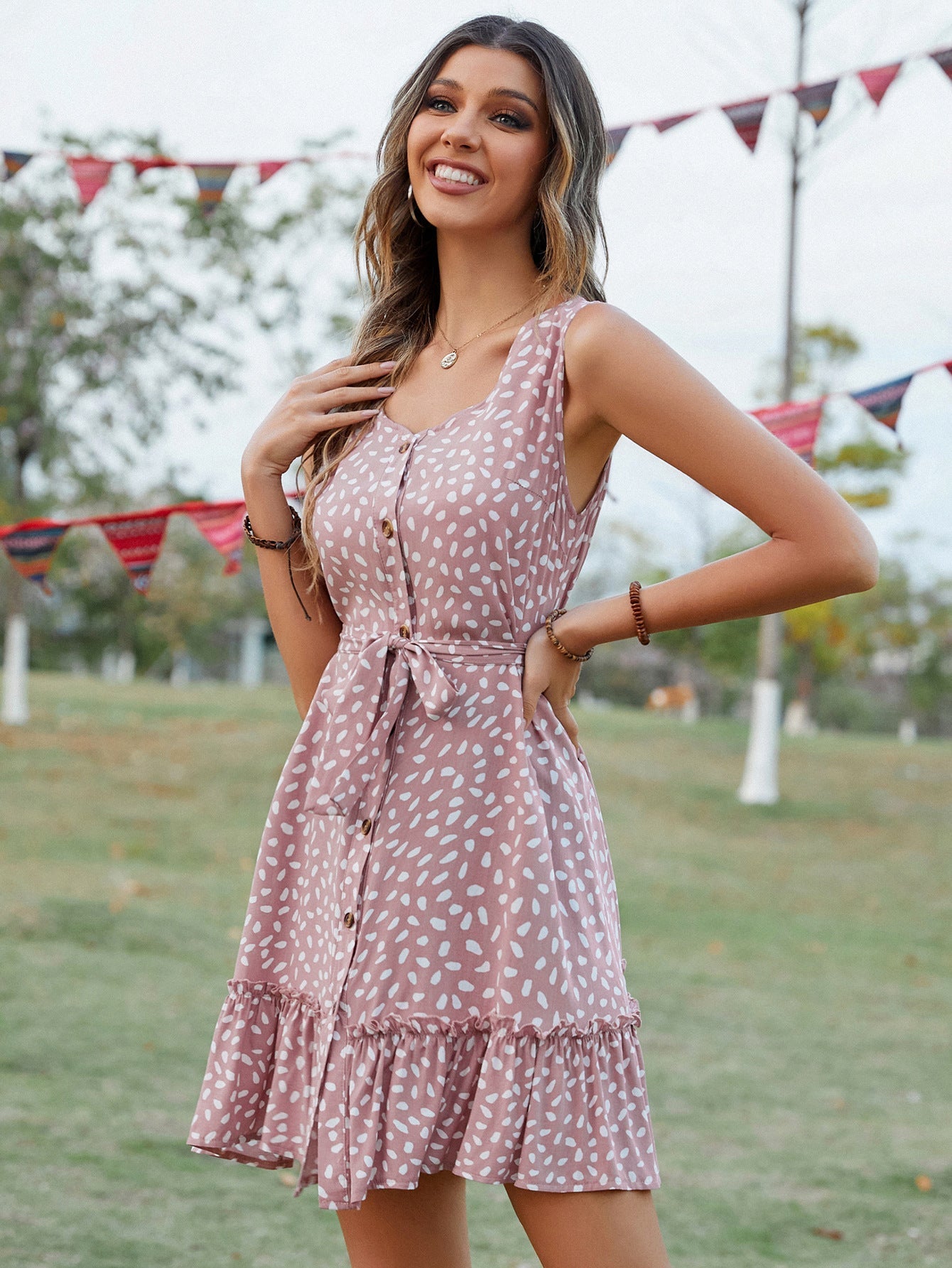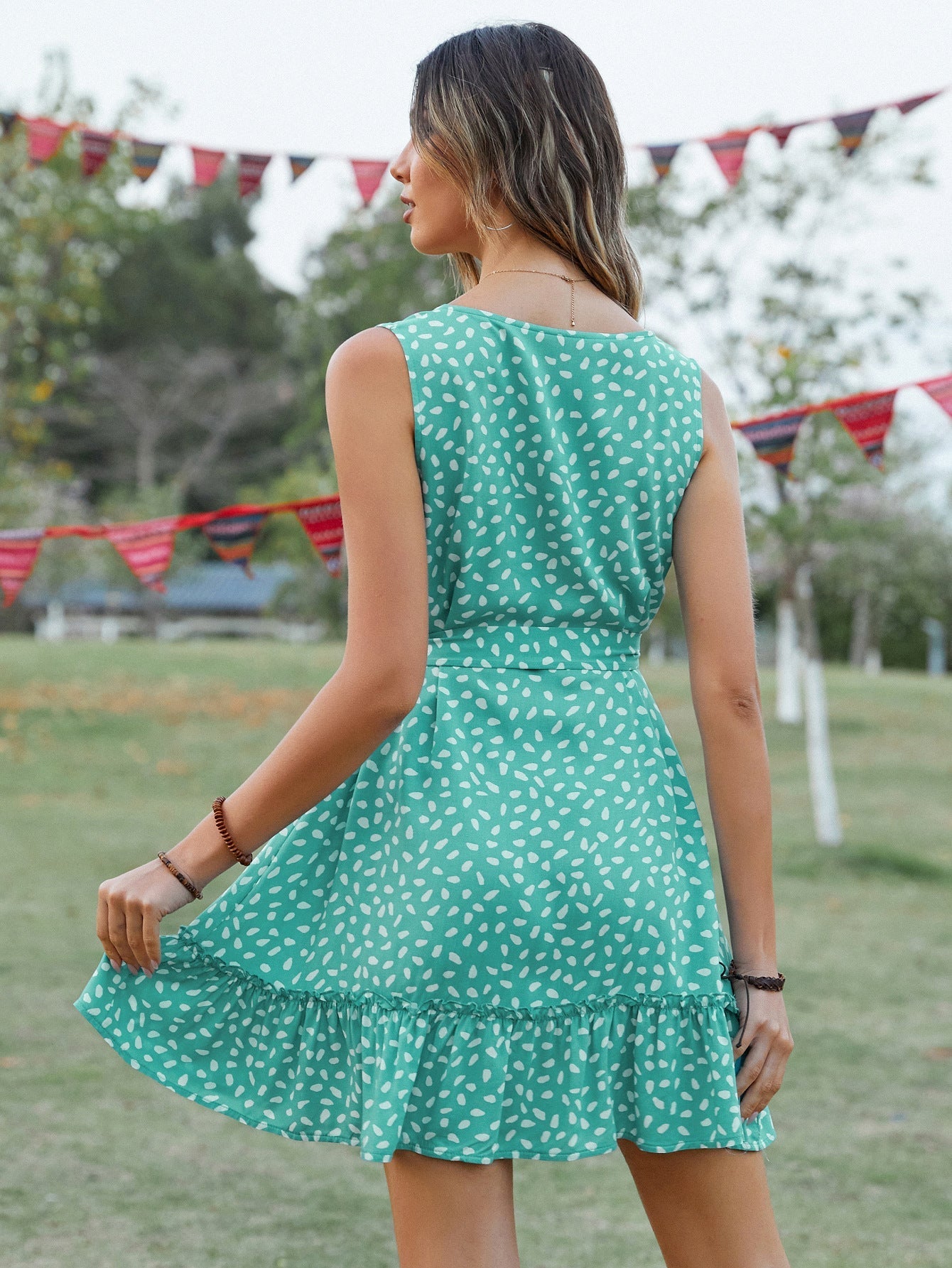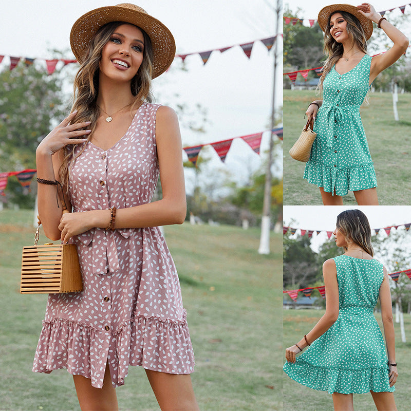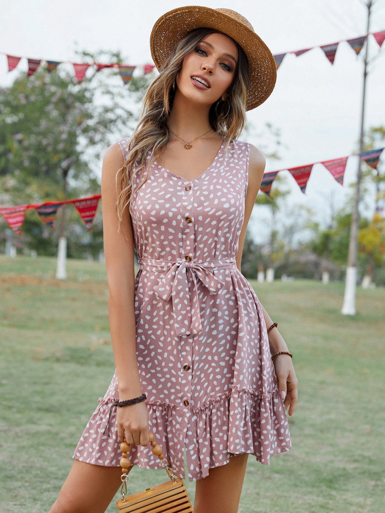 Letnia sukienka bez rękawów 2023 z dekoltem w szpic i talią