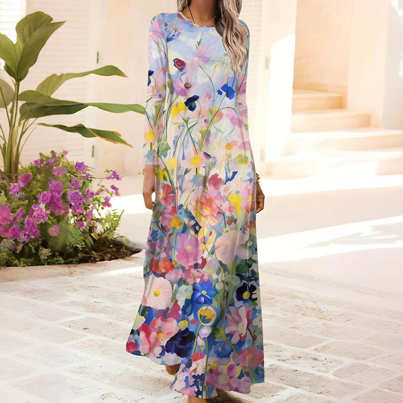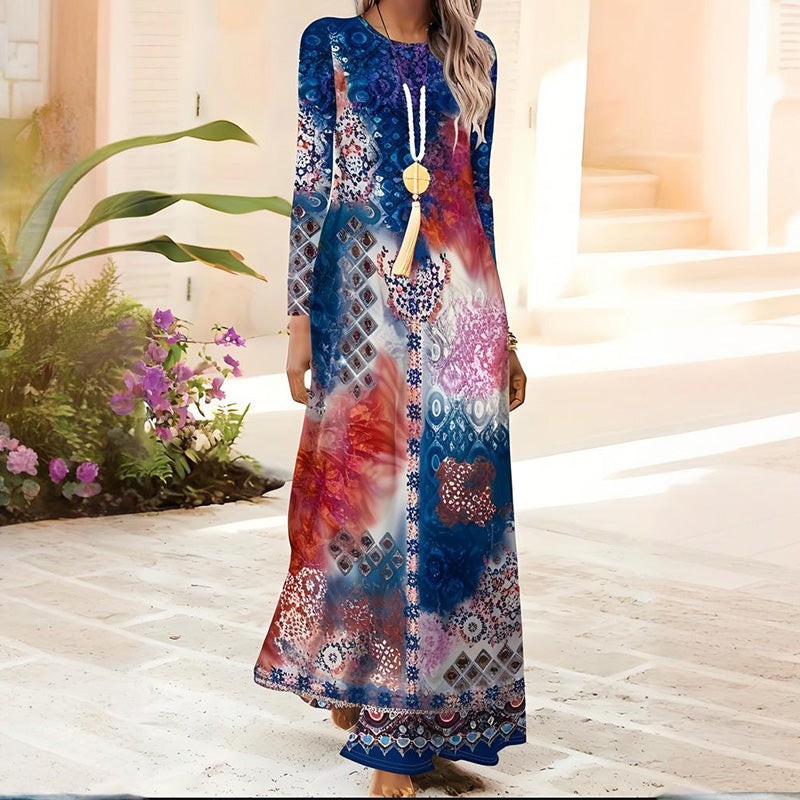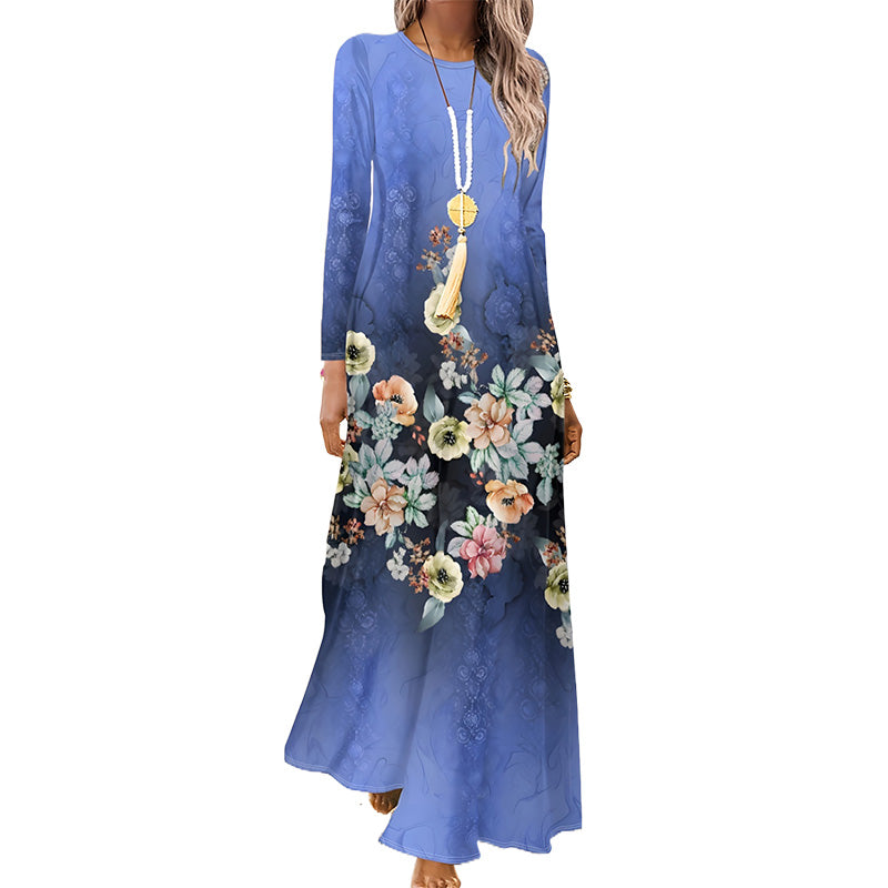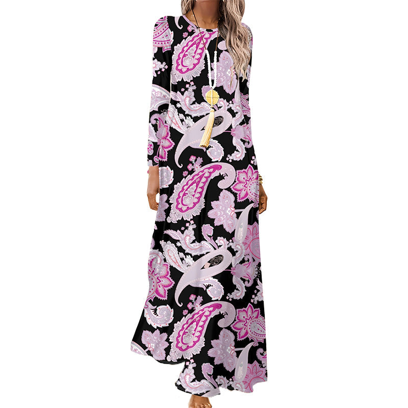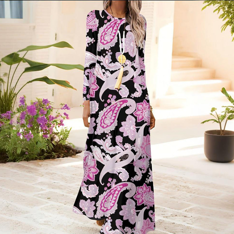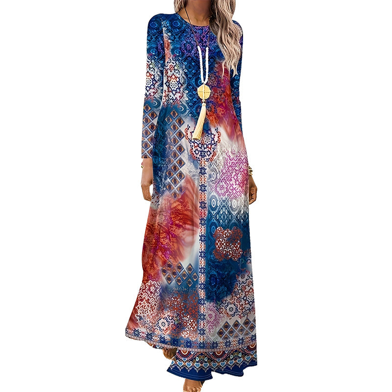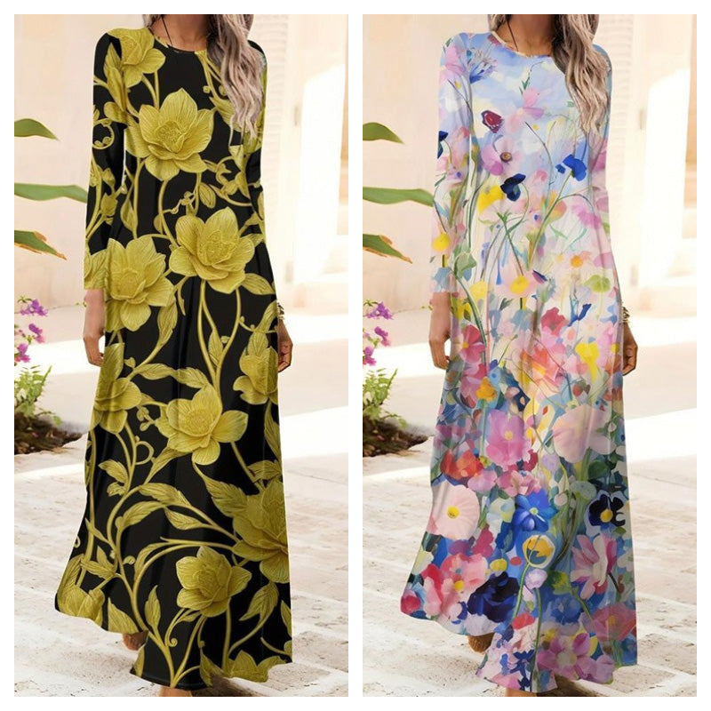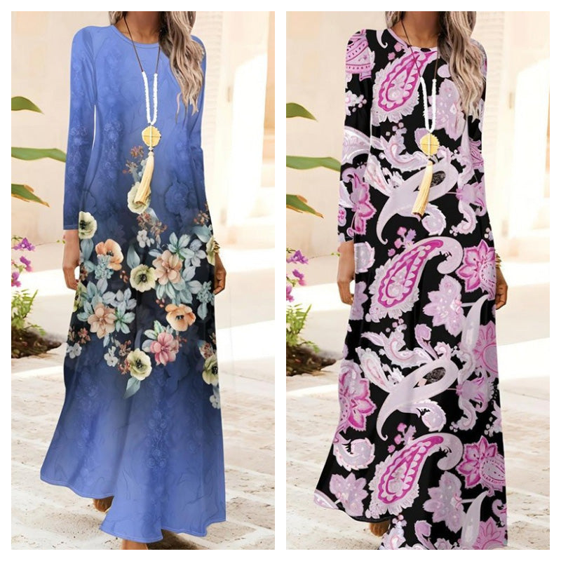 1 * Damska sukienka z długim rękawem i nadrukiem 3D