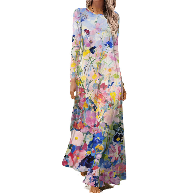 Sukienka damska z długim rękawem i nadrukiem 3D
