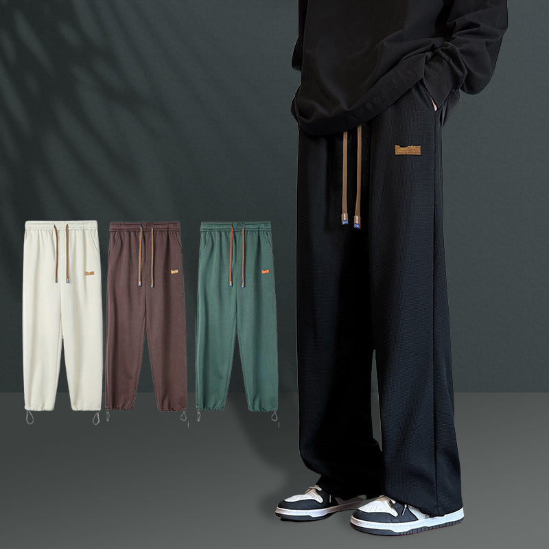 Te dzianinowe spodnie dla mężczyzn mają unikalny wzór waflowy, który dodaje tekstury i stylu Twojemu codziennemu wyglądowi. Swobodny, prosty krój zapewnia wygodne i elastyczne dopasowanie.
