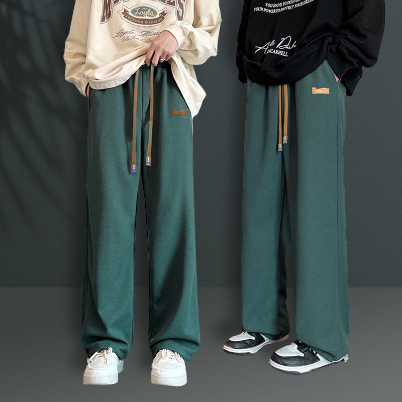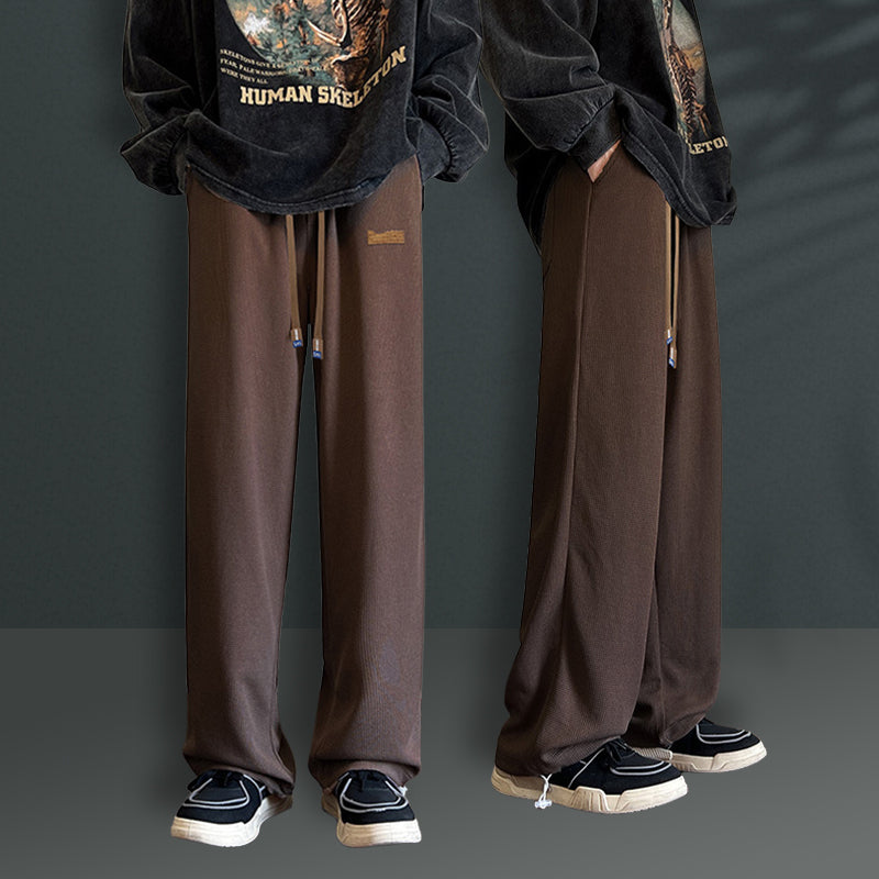 Te szerokie, dzianinowe spodnie męskie o prostych nogawkach, wykonane w 100% z poliestru, są wygodne w noszeniu i zapewniają swobodę ruchów, zapewniając maksymalny komfort. Przyjazny dla skóry materiał jest miękki i oddychający, a spodnie są odporne na zarysowania i zużycie, co zapewnia dodatkową trwałość.