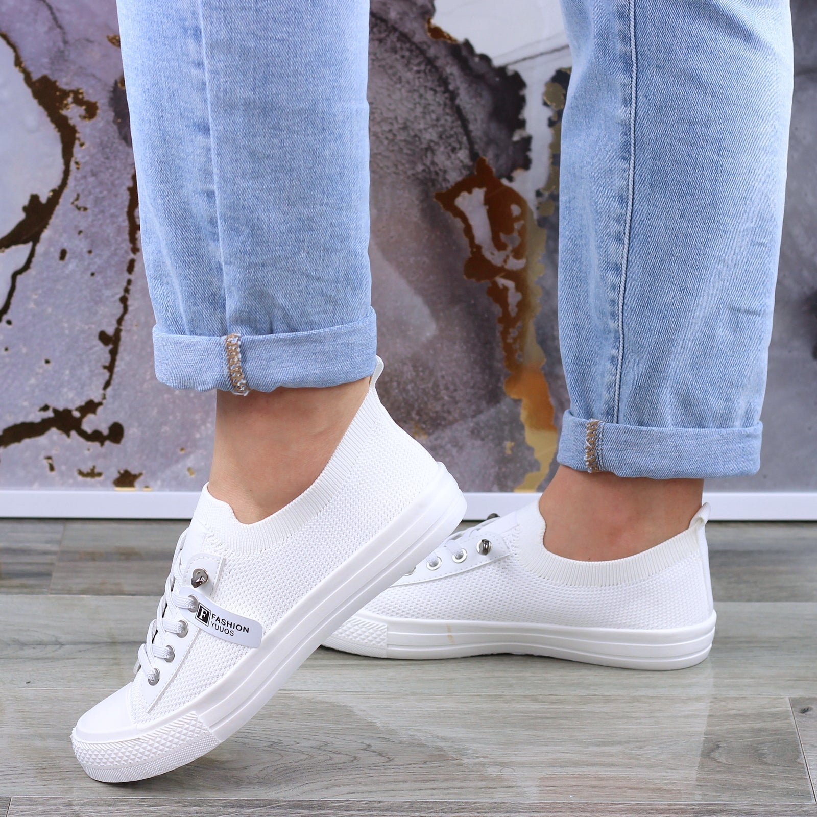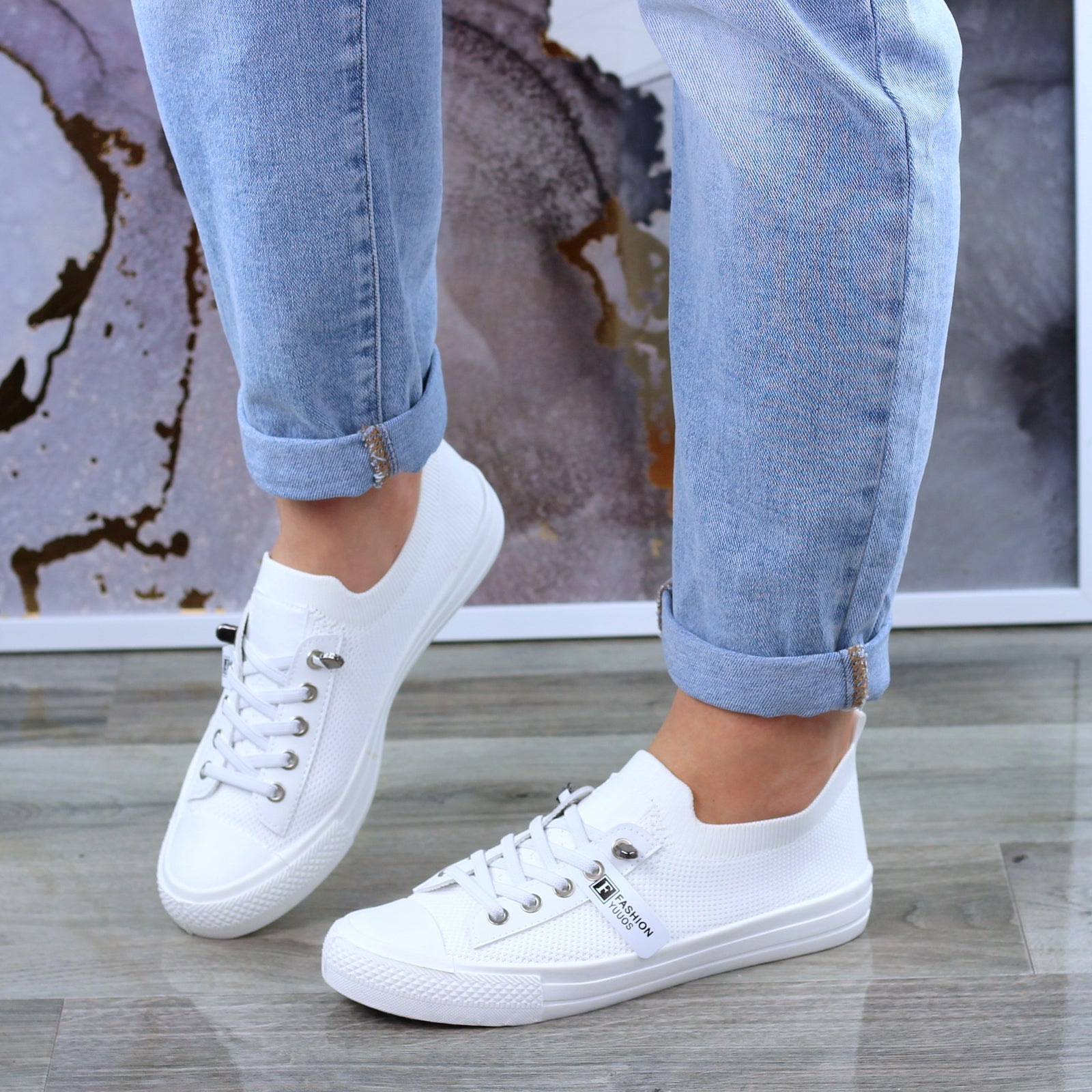 Białe trampki mięciutkie sznurowane slim na wygodnej podeszwie wykonane z mięciutkiej elastycznej tkaniny.
