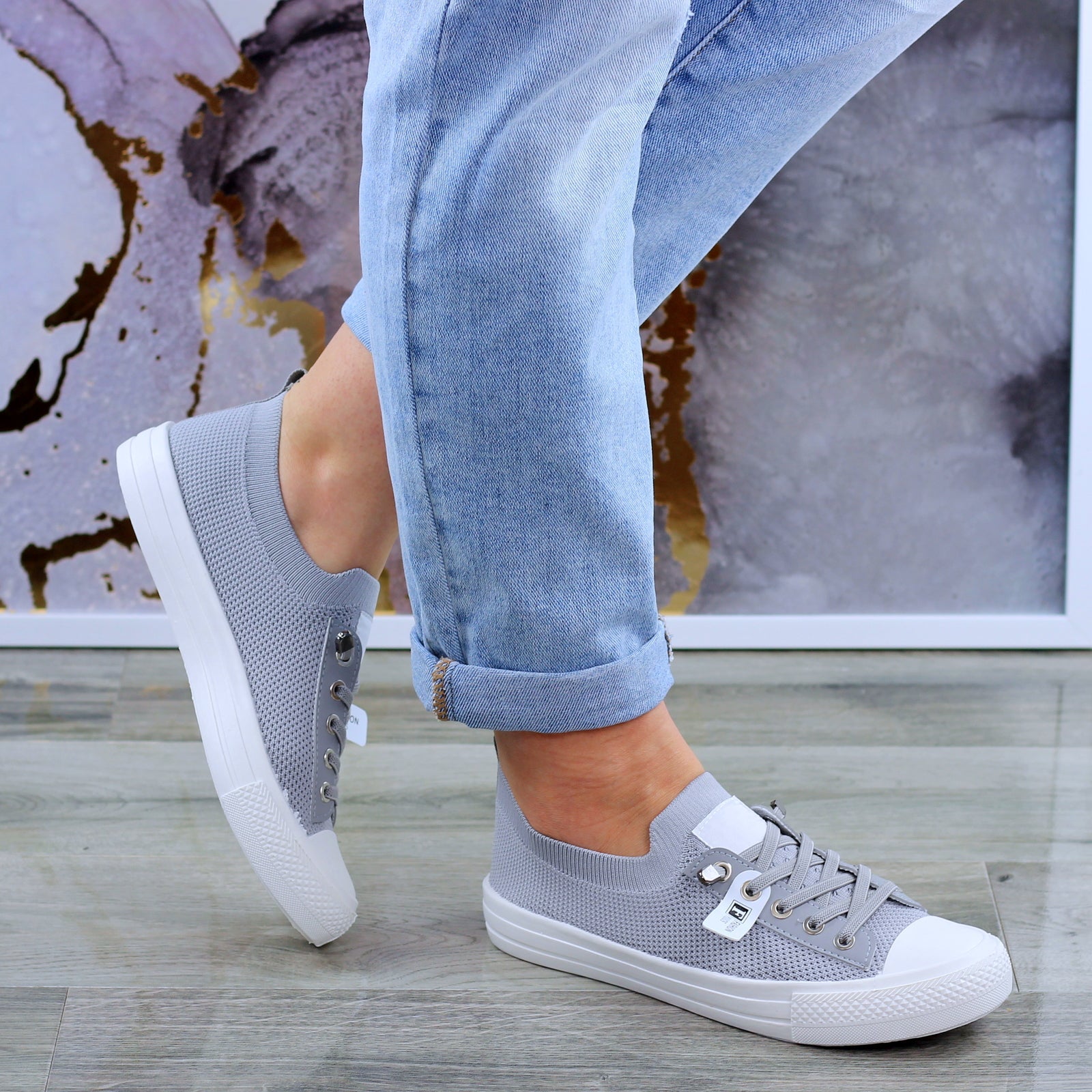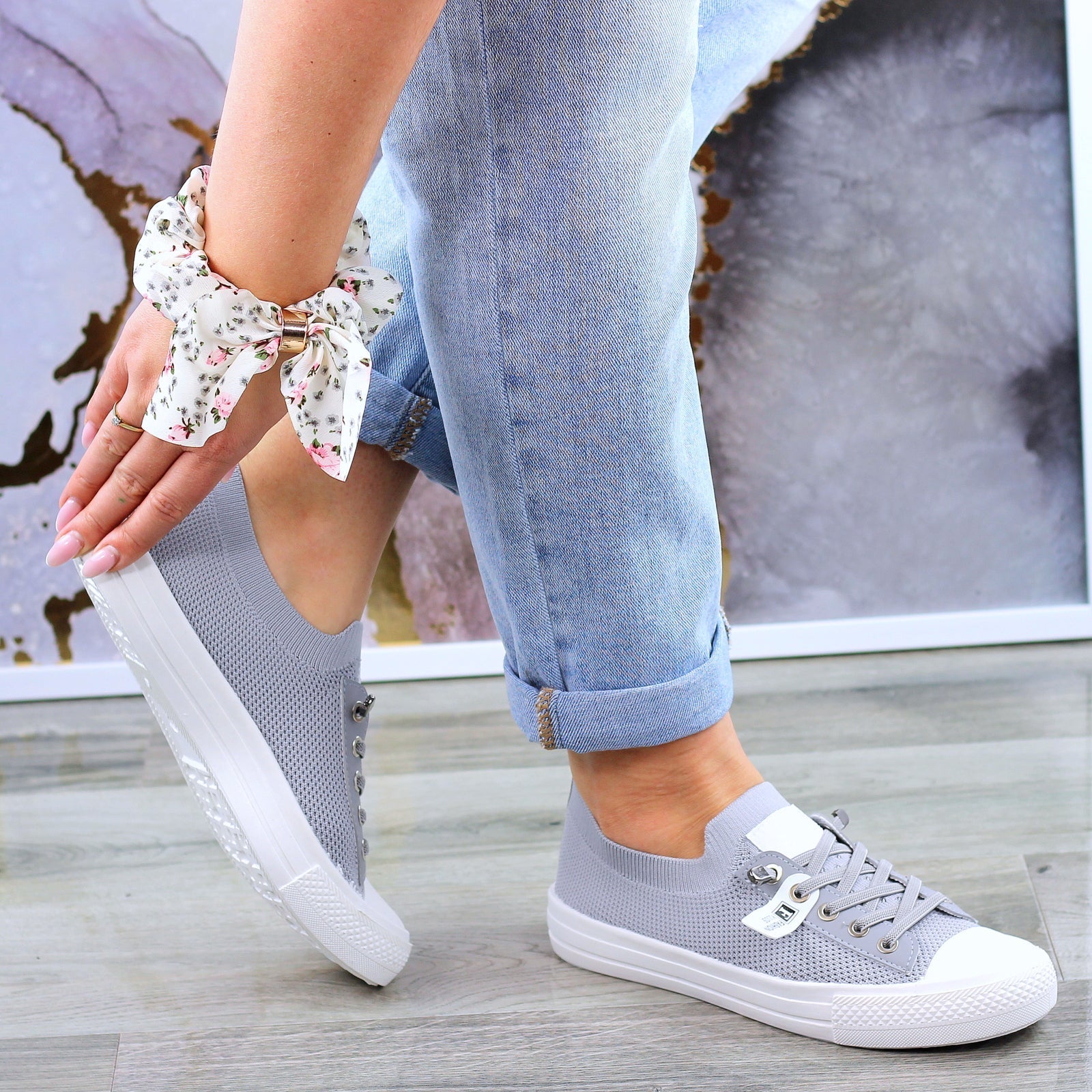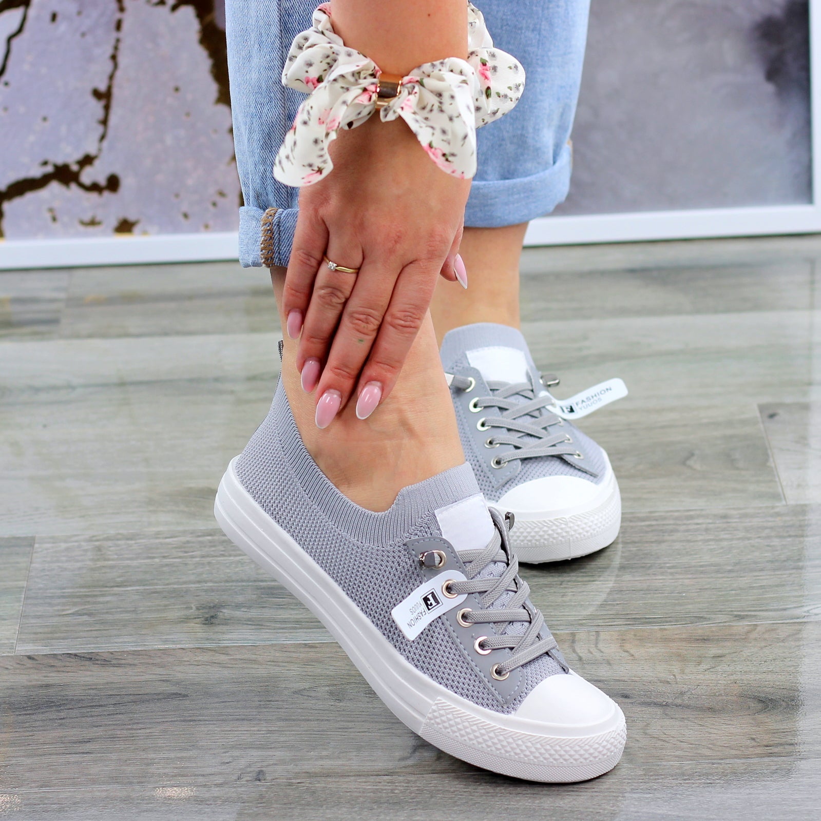 Szare trampki mięciutkie sznurowane slim na wygodnej podeszwie wykonane z mięciutkiej elastycznej tkaniny.
