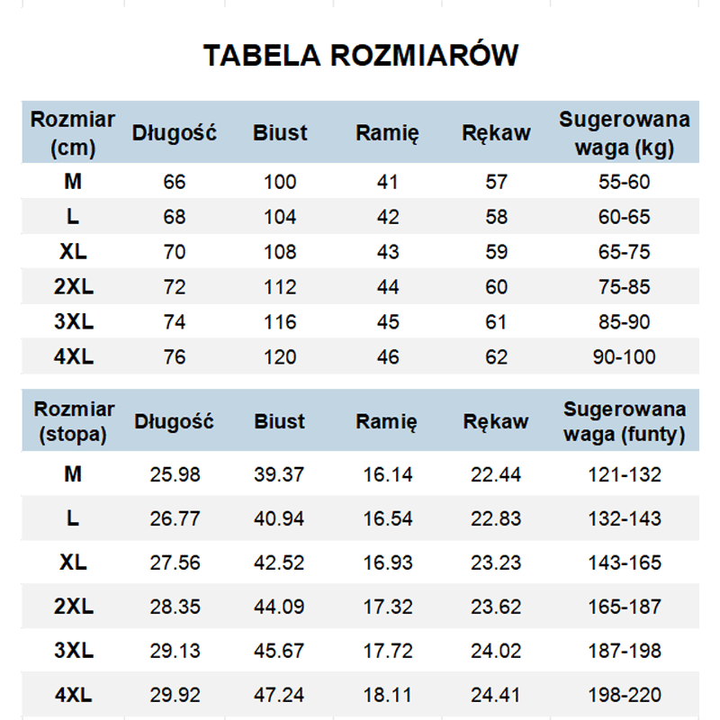 Rozmiar: M, L, XL, 2XL, 3XL, 4XL