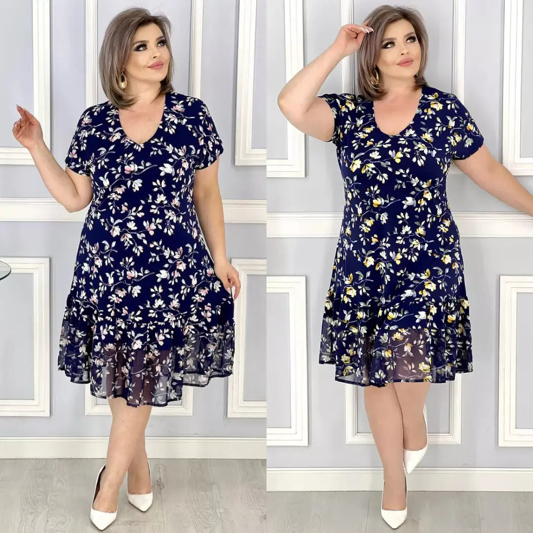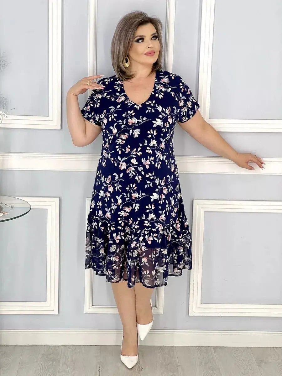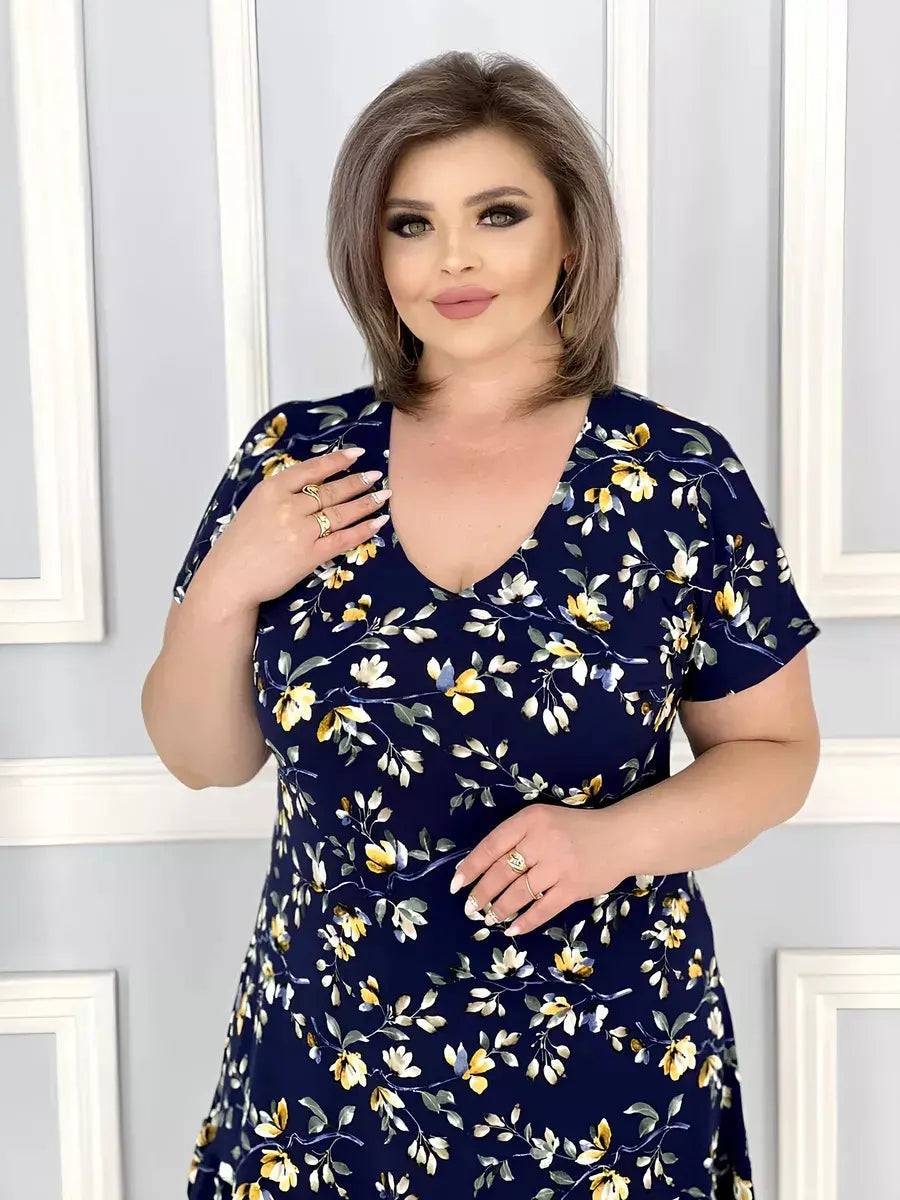 Nowa sukienka z kwiatowym dekoltem w serek