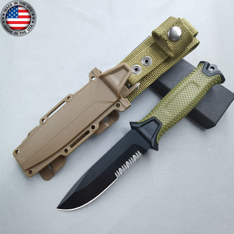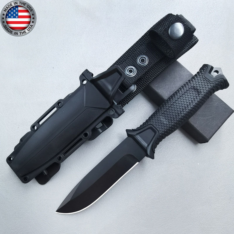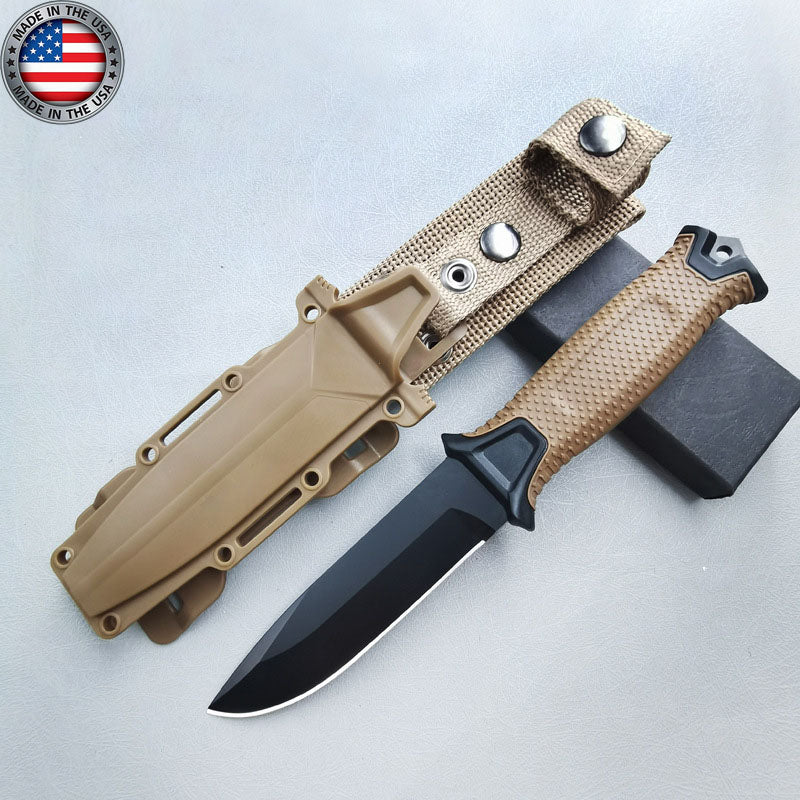 - Pokryte czarną powłoką ceramiczną, precyzyjnie ostrzone, pełne ostrze 420HC StrongArm opiera się na podstawach wojskowego treningu przetrwania. Gumowana rękojeść o diamentowej fakturze zapewnia pewny chwyt noża w każdych warunkach. Zapadka u podstawy rękojeści została zaprojektowana do przebijania się przez twarde powierzchnie w celu skutecznej akcji ratunkowej, a ceramiczna powłoka na ostrzu zapewnia niski profil wizualny dla płynnej obsługi i zapobiega korozji, zapewniając długą żywotność ostrza.