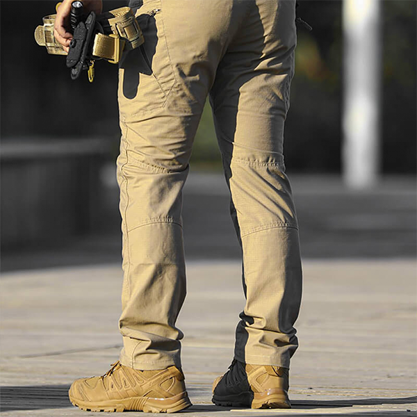 2 bezpieczne kieszenie zapinane na zamek i sznurek + 4 kieszenie o dużej pojemności + 4 małe kieszenie na telefon, portfel, klucze, sprzęt taktyczny lub inne akcesoria dla maksymalnego bezpieczeństwa, wygody i wydajności w ruchu. Swoboda ruchów - Spodnie typu softshell ze stretchem i elastycznymi kolanami zapewniają dużą elastyczność, pełną mobilność i idealne dopasowanie. Trójwymiarowy krój z wyszukanymi szwami sprawia, że spodnie turystyczne są bardziej odpowiednie i stylowe.