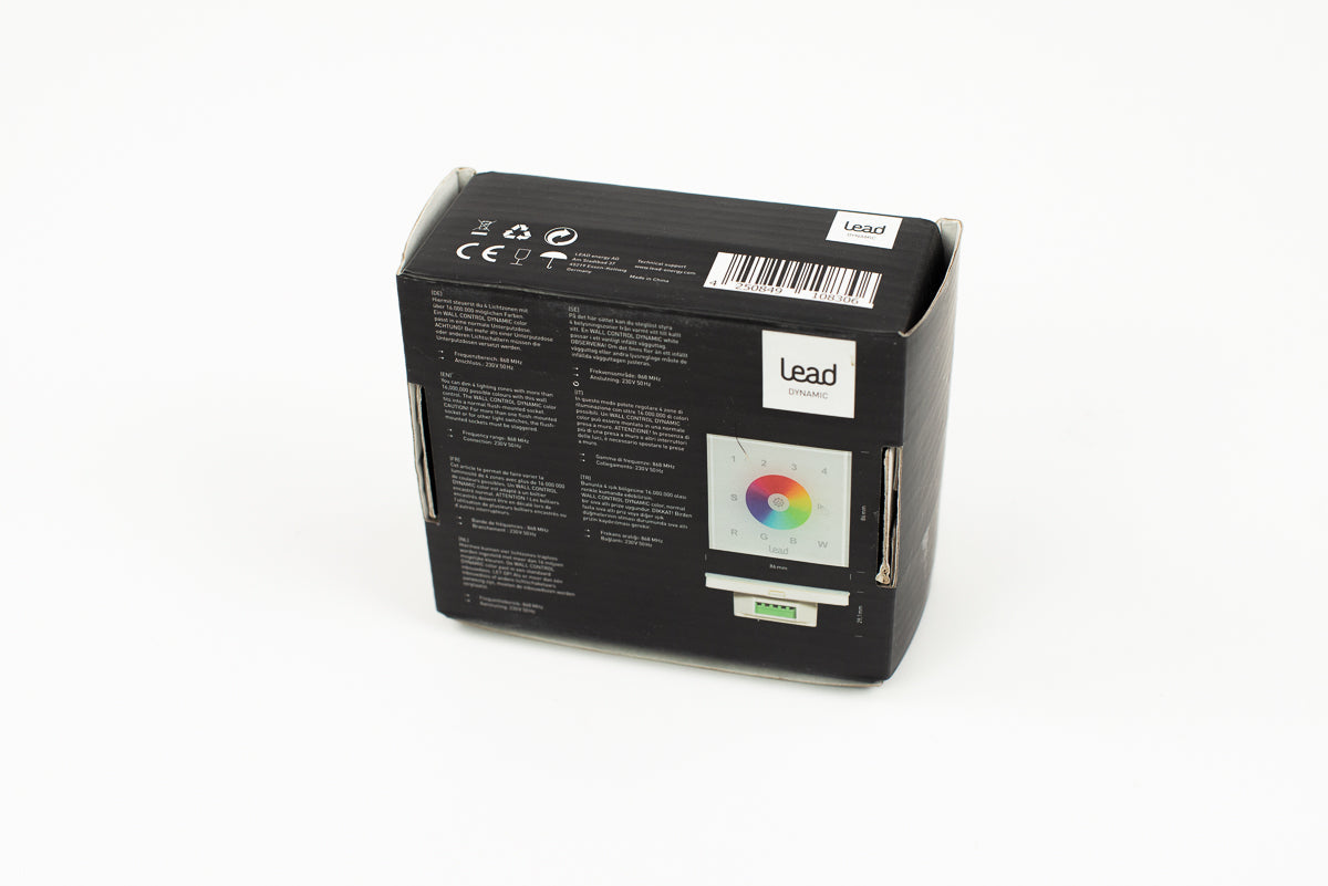 Ten przełącznik ścienny steruje panelami diodowymi Dynamic Color 30 i 63 firmy Lead Energy.