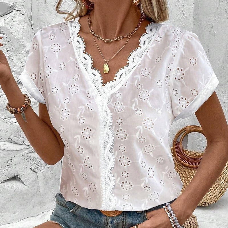 CHIC SHORT SLEEVE: Krótkie rękawy zapewniają stylowy i wygodny krój, idealny zarówno na ciepłe, jak i przejściowe pory roku. Zachowaj chłód, styl i wygodę przez cały dzień dzięki tej wszechstronnej koronkowej bluzce.
