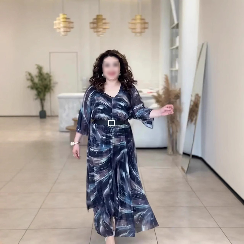 Pakiet zawiera: 1* Elegancka sukienka damska z nadrukiem i dekoltem w serek