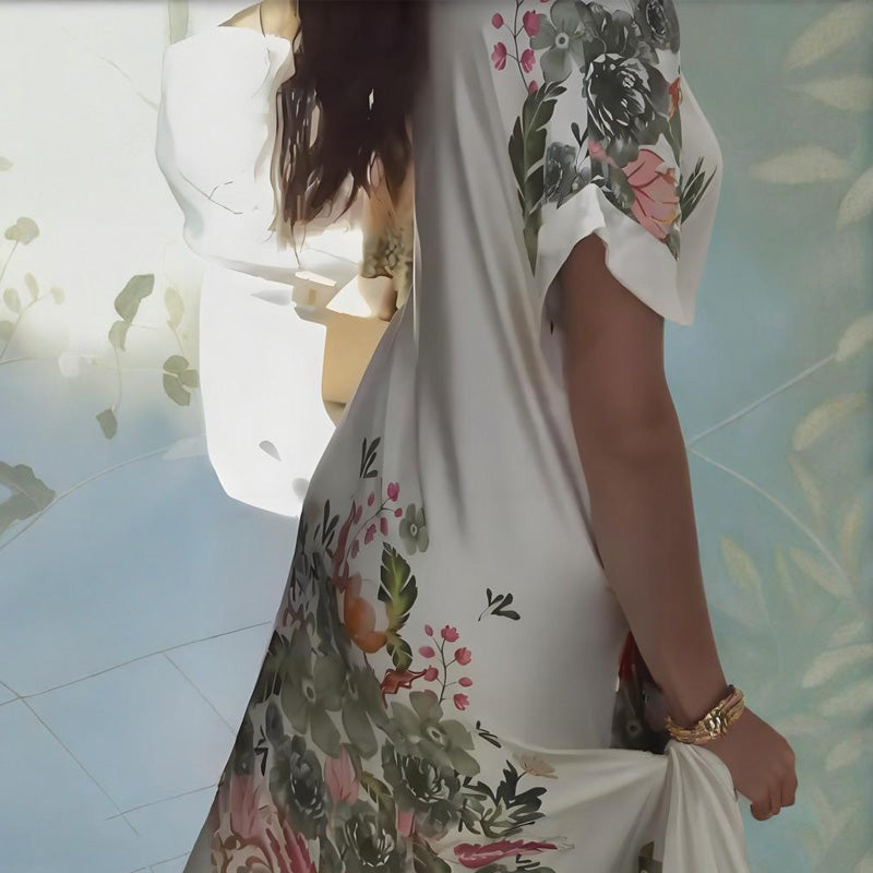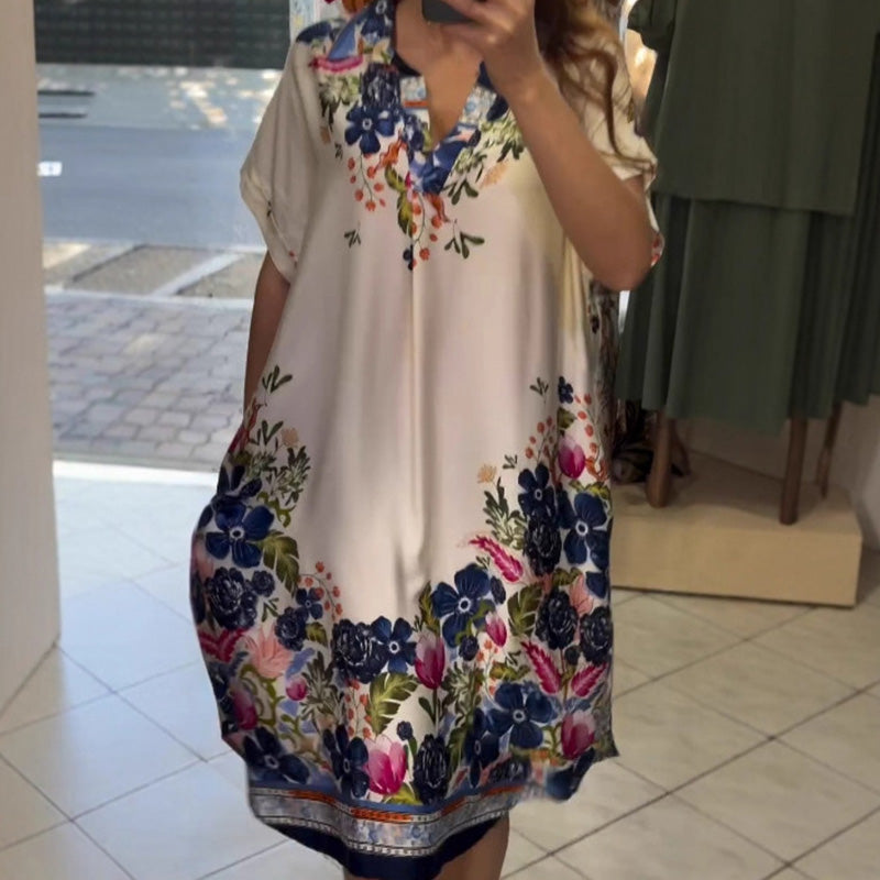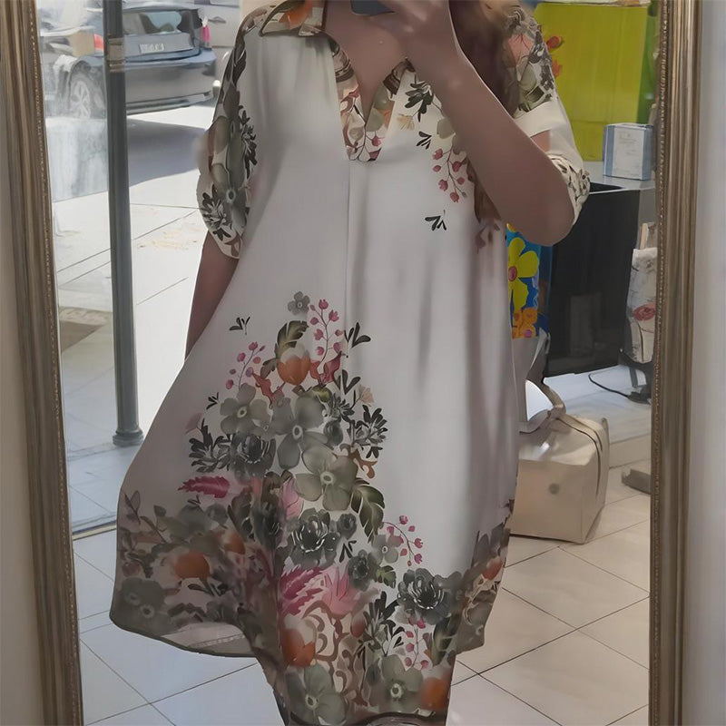 Luźna sukienka w kwiaty z dekoltem w szpic