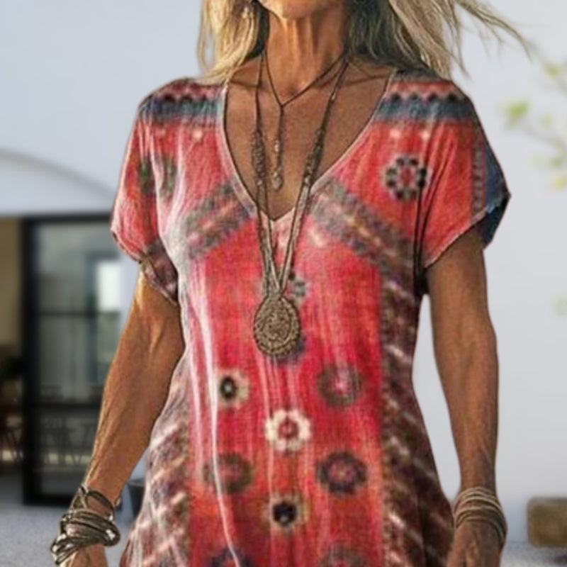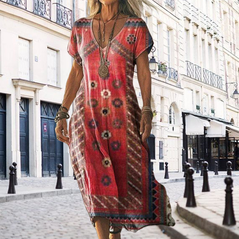 ✨Damska sukienka z krótkim rękawem i nadrukiem V-Neck