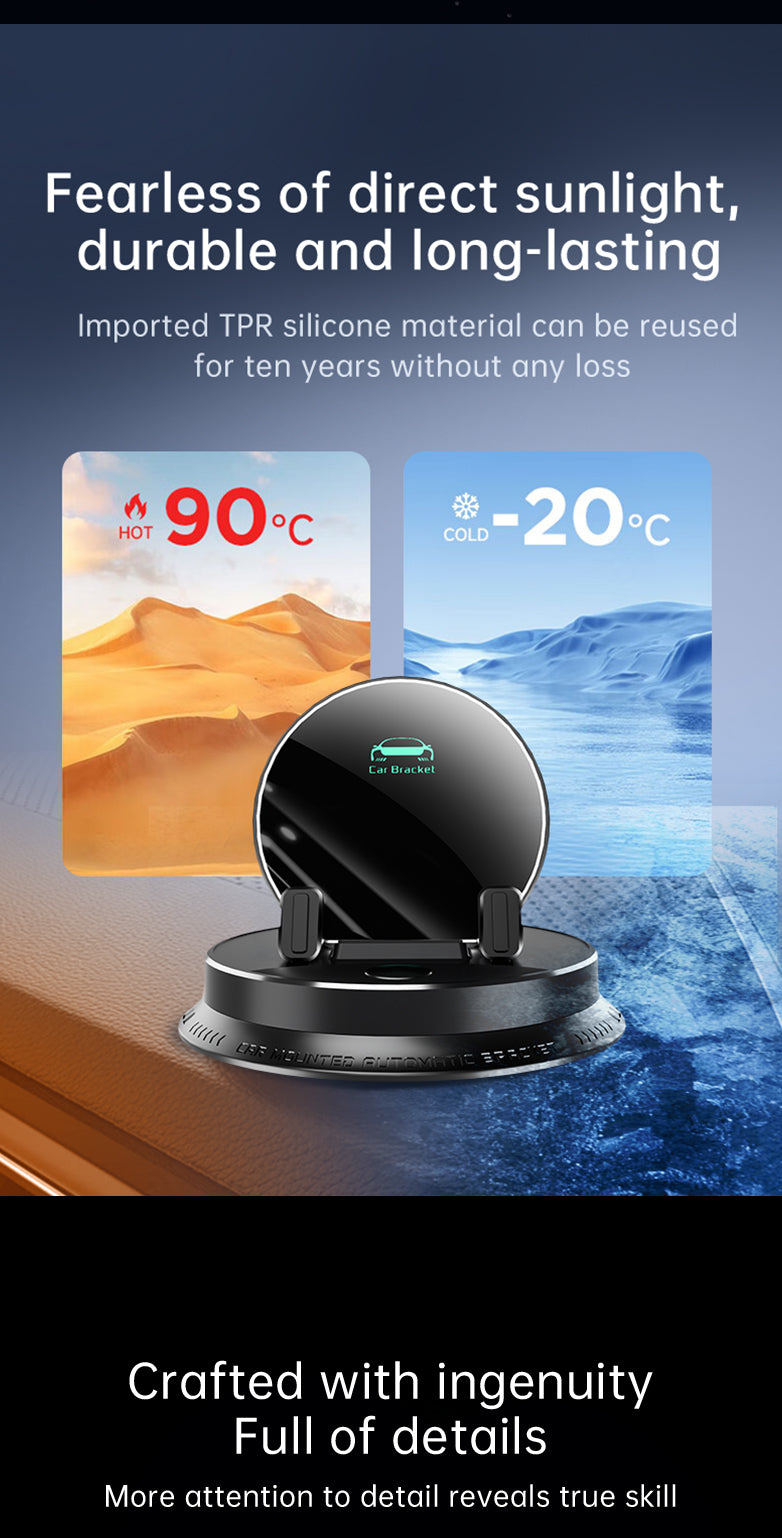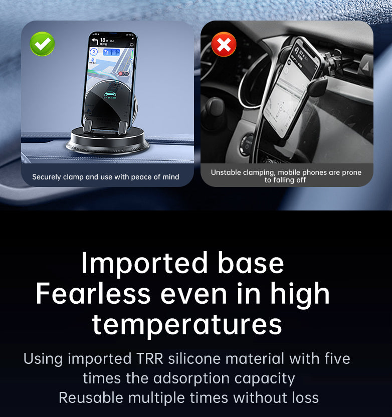 【Wysokiej jakości materiały】 Akcesoria uchwytu telefonu samochodowego wykonane są z wysokiej jakości materiałów ABS+silikonowych o silnej przyczepności.