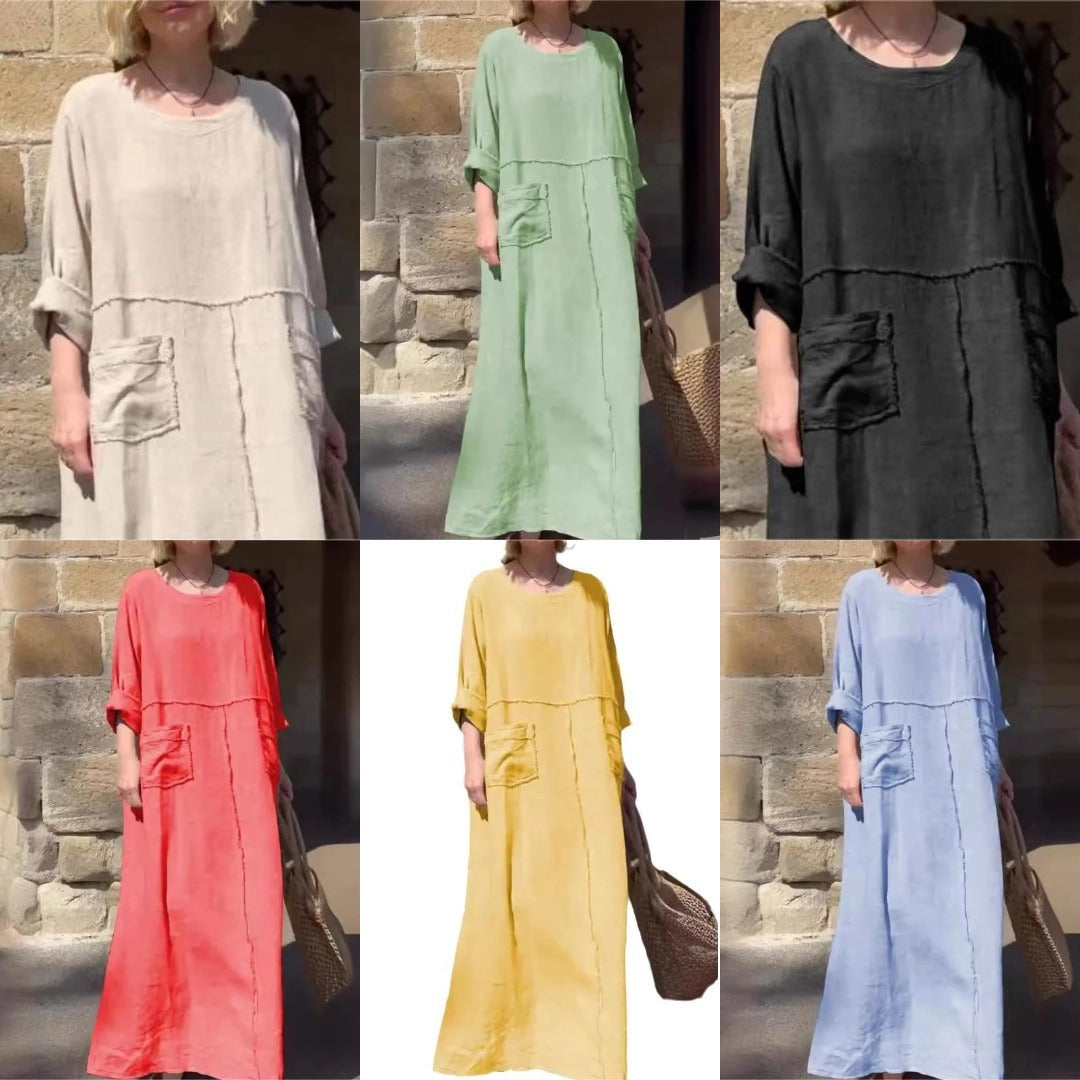 🌿Jednokolorowa sukienka z okrągłym dekoltem, oddychająca🌪️