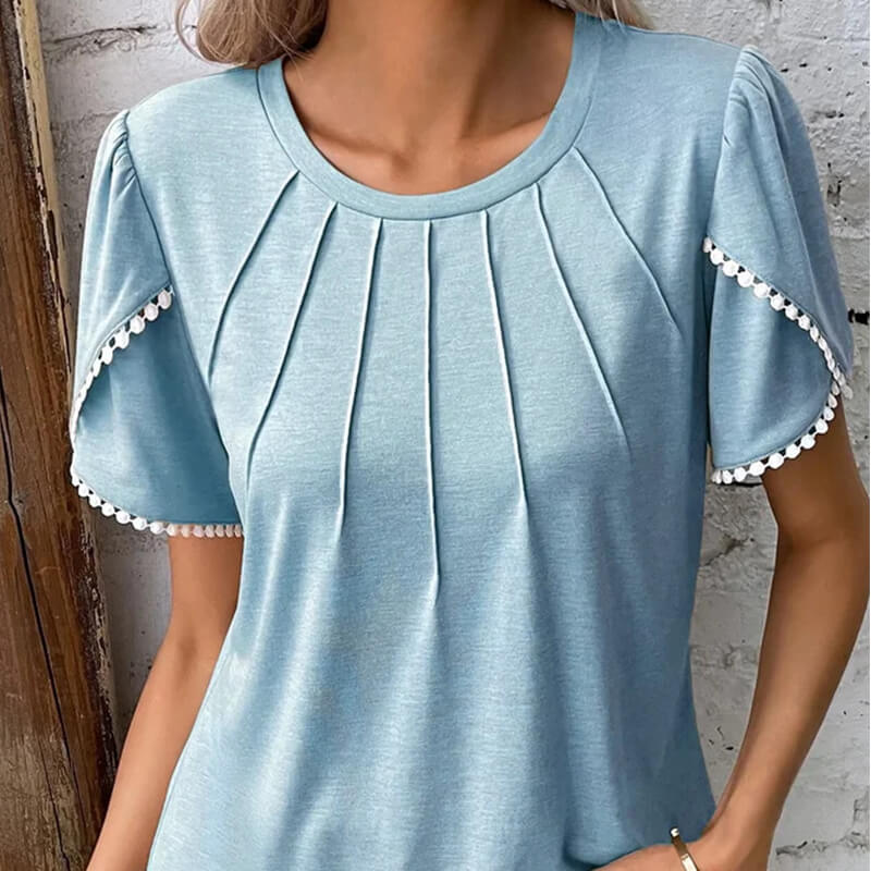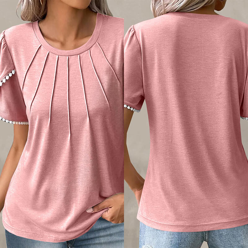 🔥Nowa damska, swobodna, jednokolorowa, koronkowa koszulka z okrągłym dekoltem