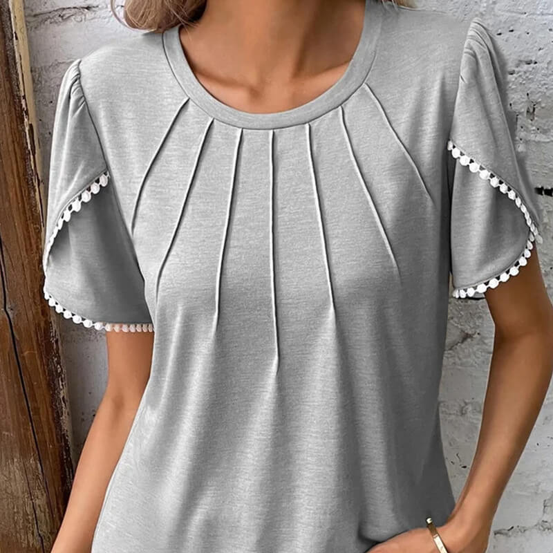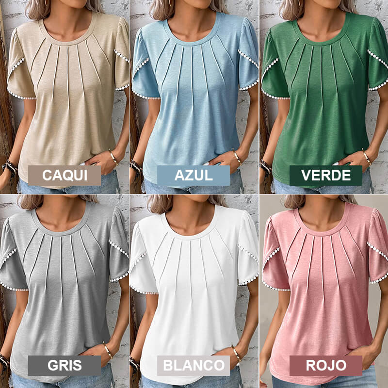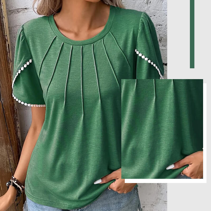 Ta plisowana bluzka jest wykonana z wysokiej jakości materiału, który jest miękki i oddychający.
