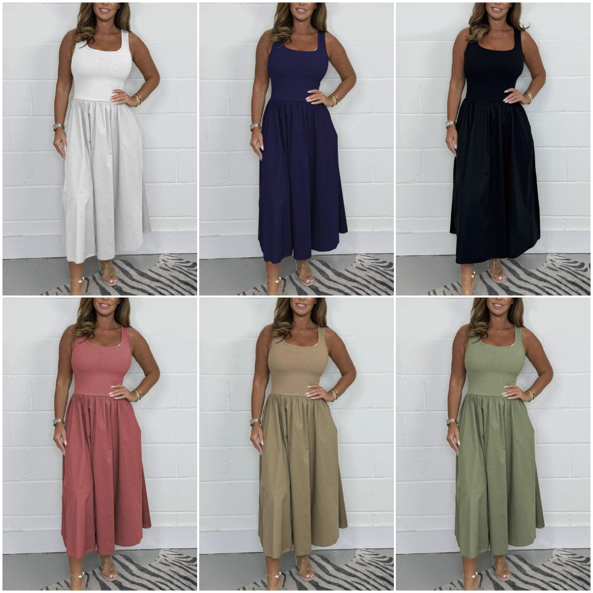 2025🌷Damska sukienka bez rękawów w jednolitym kolorze, swobodna