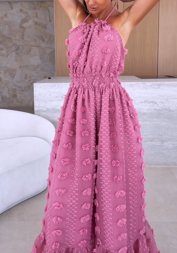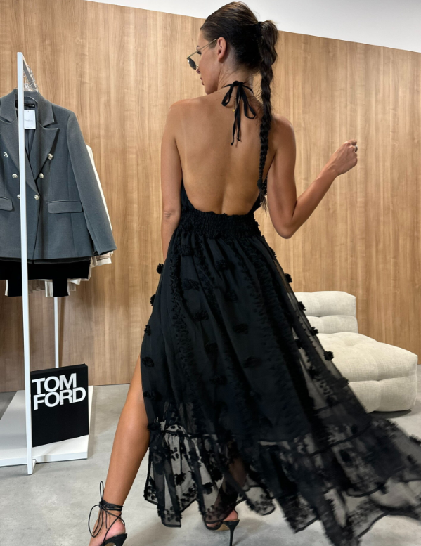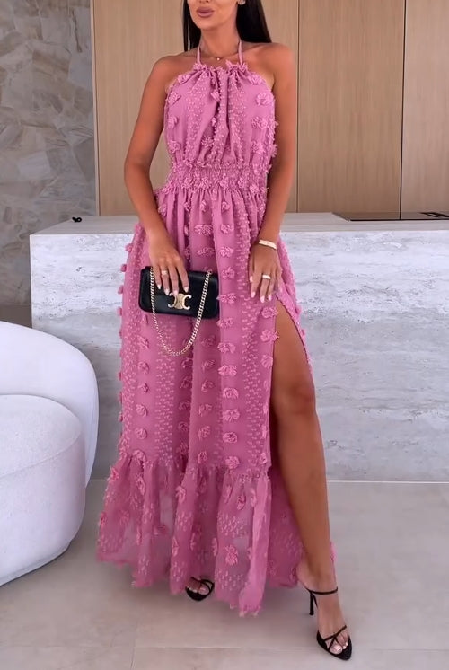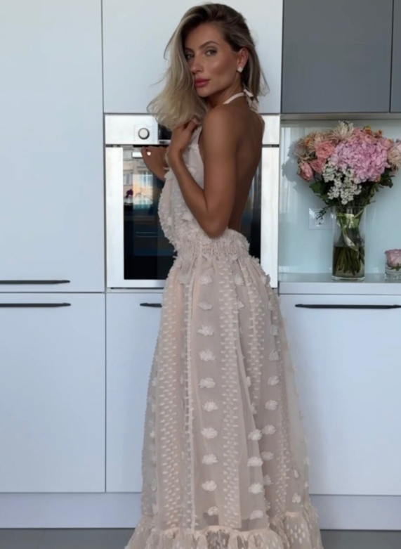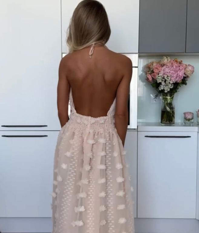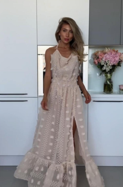 Letnia damska modna sukienka z odkrytymi plecami i dużym rozcięciem