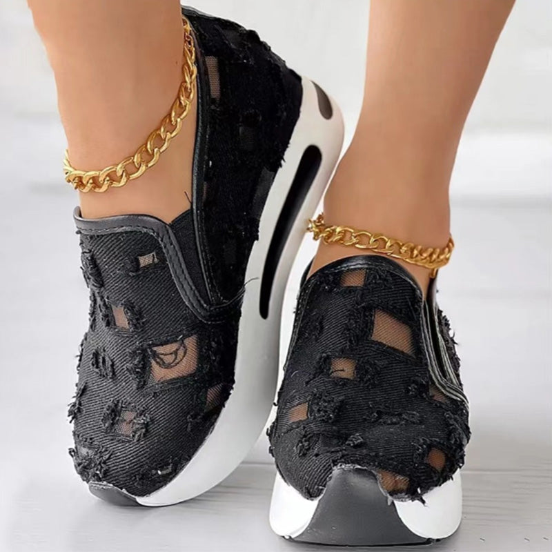 ODDYCHAJ swobodnie dzięki cholewce z siateczki zapewniającej optymalny przepływ powietrza - Lekka płócienna konstrukcja z siateczki zapewnia doskonałą wentylację, dzięki czemu stopy pozostają chłodne i suche w gorące letnie dni. Koniec z poceniem się – tylko całodniowa świeżość.