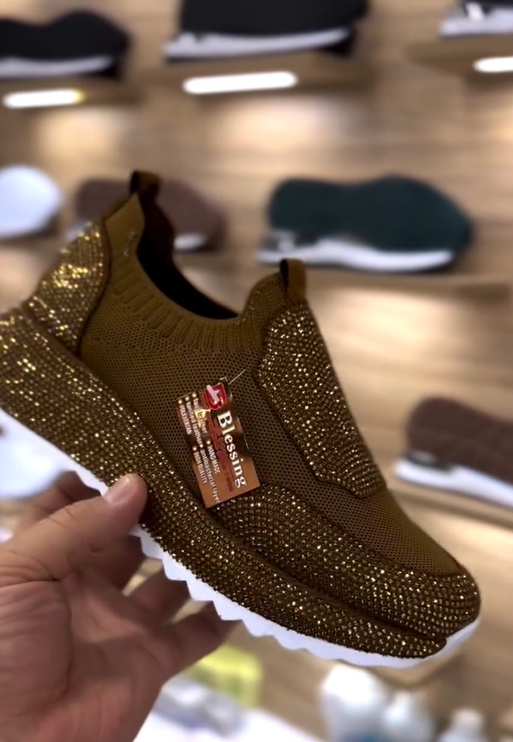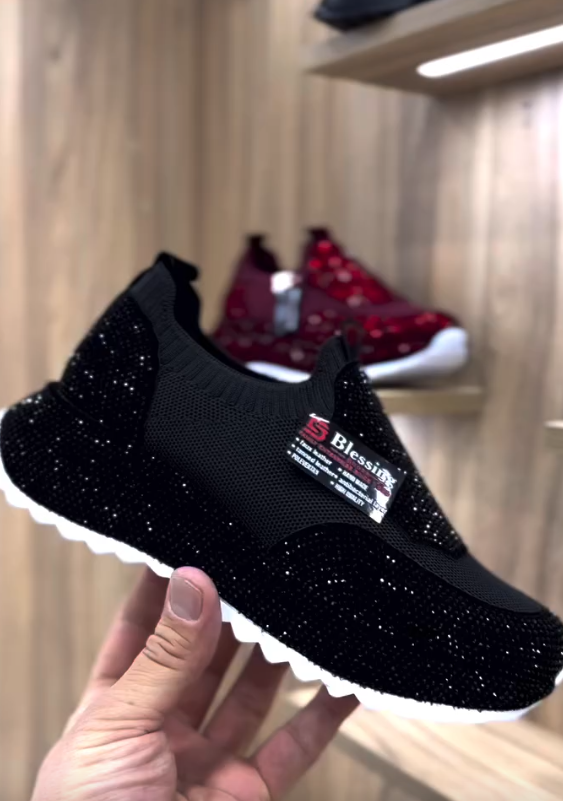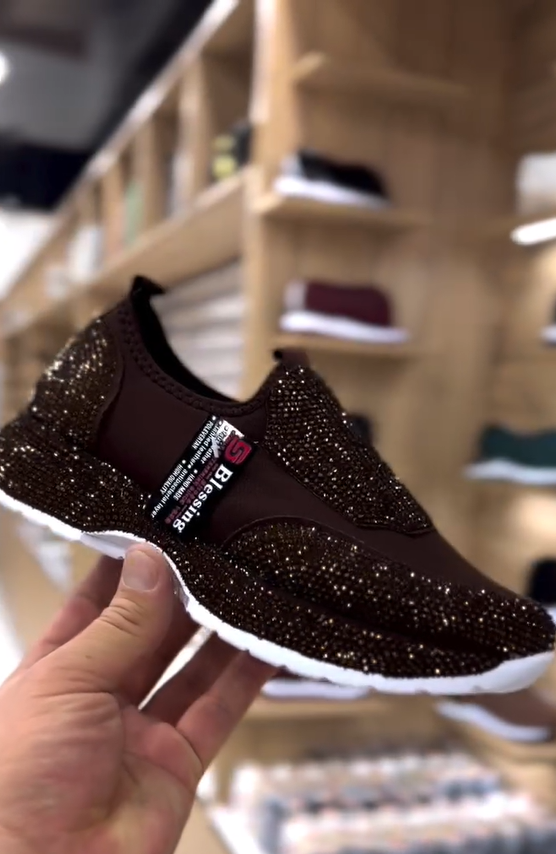 Modne, codzienne trampki z kryształkami