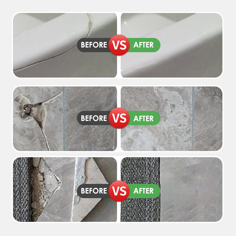 NAPRAWIA WSZYSTKO – Pęknięte płytki? Uszkodzone wanny? Odpadające fragmenty wazonów? Produkt nadaje się do ceramiki, porcelany i innych powierzchni, oferując uniwersalne rozwiązanie do domowych napraw. Nie wyrzucaj uszkodzonych przedmiotów – po prostu je napraw i oszczędź pieniądze.