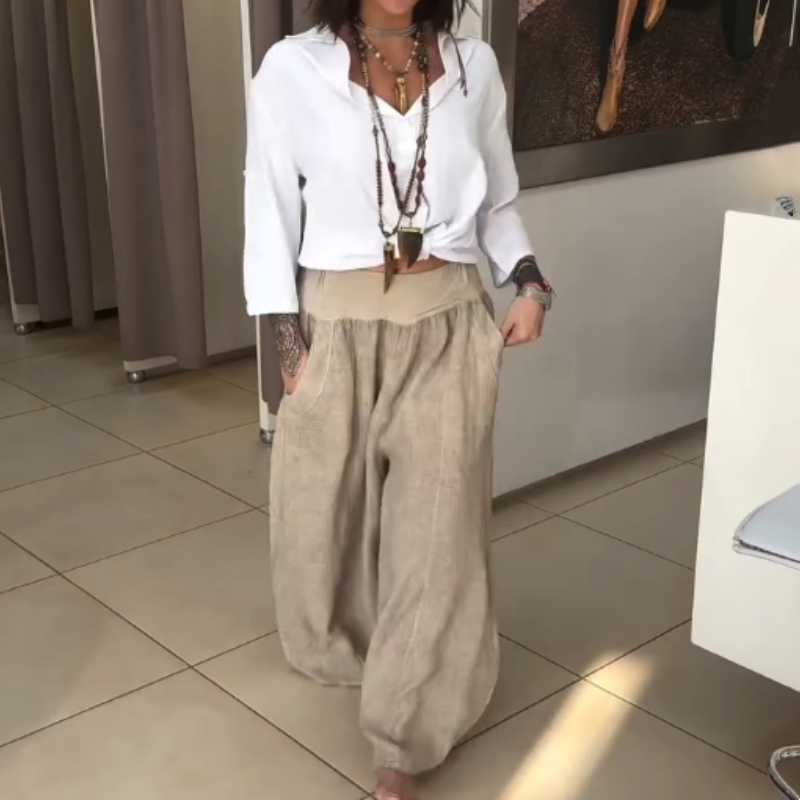 ✨Damskie spodnie z szerokimi elastycznymi nogawkami i kieszeniami
