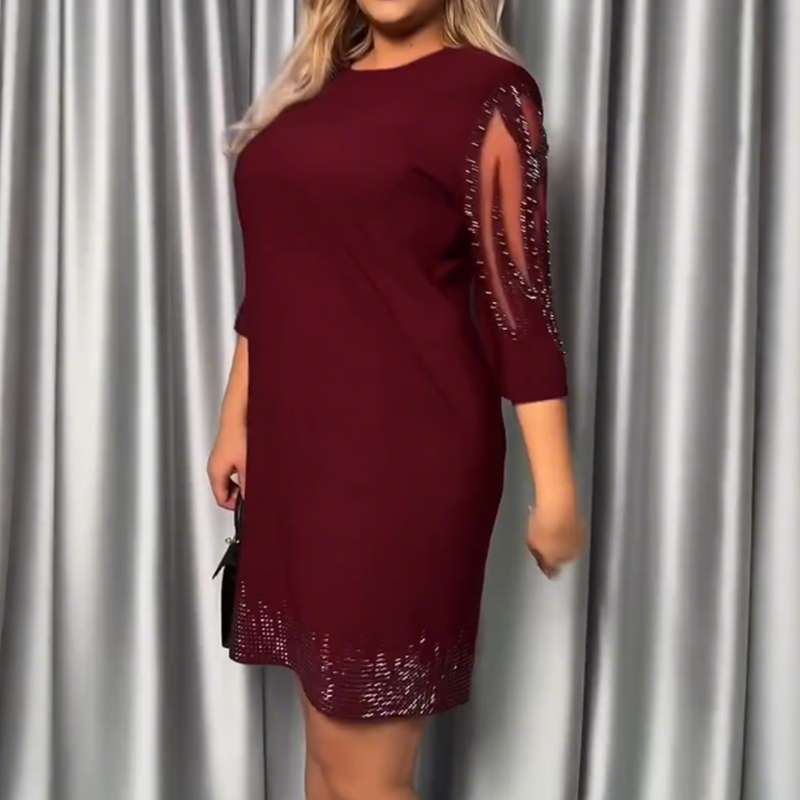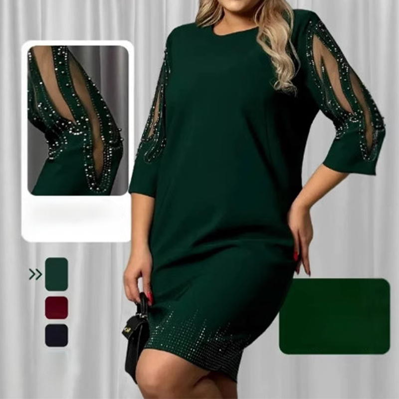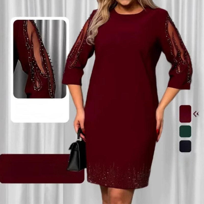 ✨Sukienka z rękawem trzy czwarte i koronką z kryształkami